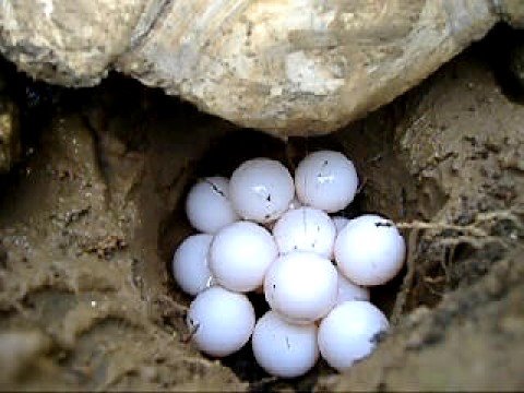 Después del apareamiento, las hembras ponen de dos a cinco huevos, cavando un hoyo de 12 centímetros de profundidad, la incubación toma de 124 a 185 días, las tortuguitas nacen a principio de la temporada de lluvia. Al nacer su tamaño es de 19 pulgadas (4.8cm) más o menos.