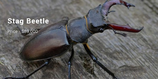 They are not as the common lions breed. What makes them more expensive is because of their white pigmentation with color of their eyes. It is believe they are located on South Africa wild reserve. It is believe to be less than 300 species worldwide.Stag Beetle - $89,000