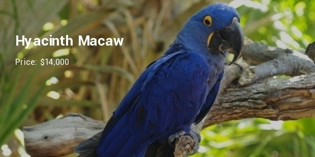 The Palm Cockatoo also known as the Goliath Cockatoo, is a large smoky-grey or black parrot of the cockatoo family. It is the only member in subfamily and the only member of the monotypic genus, Probosciger. Its unique position within the cockatoo family has been confirmed by molecular studies. It has a unique red cheek patch that changes color when the bird is excited or alarmed.Hyacinth Macaw - $14,000