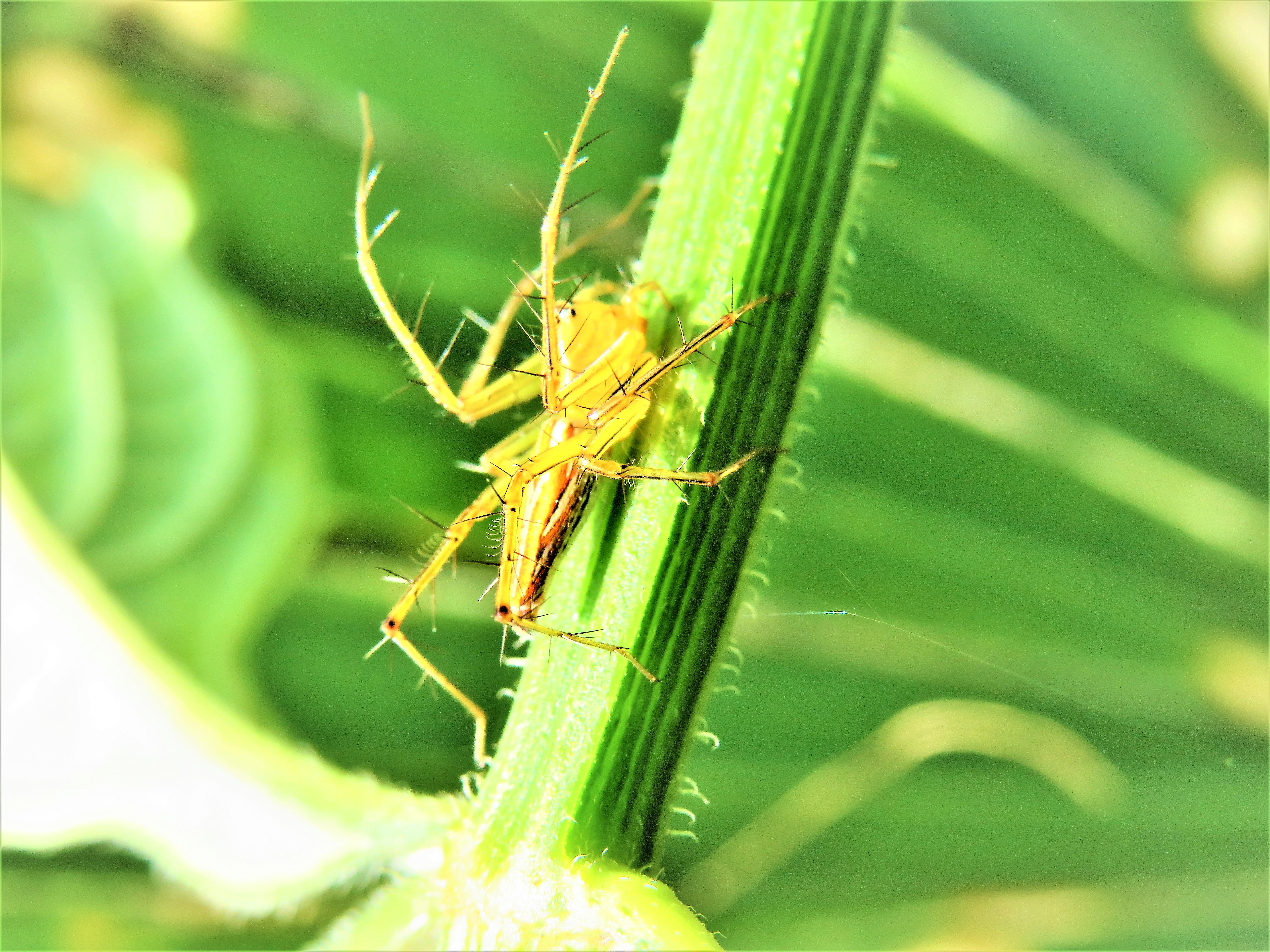 Sebuah animal yang sangat mengagumkan untuk di pandang, laba-laba yang berwarna kuning ini sangat cantik dari yang lainnya, laba-laba ini masih sangat muda dan kecil dia bersembunyi di balik daun atau pepohonan yang kecil jadi sangat susah untuk mendapatkan sebuah objek dari laba-laba ini.