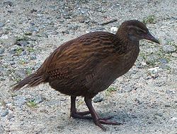 is a species of gruiforme bird of the family Rallidae endemic of New Zealand. The stories of wekas that steal shiny items and bags of sugar are also part of New Zealand folklore. The wekas are robust brown birds, the size of a chicken and incapable of flying. They usually measure around 50 cm tall and weigh around 1 kg.
