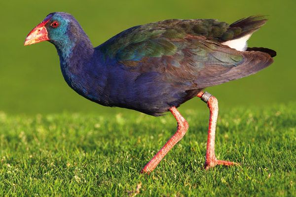 is a species of gruiforme bird of the Rallidae family, related with the common and endemic purple swamp of New Zealand. It is in danger of extinction. The adults are bluish in color, although they have a black plumage when they are chicks, their beaks also turn from black to red as they grow.
