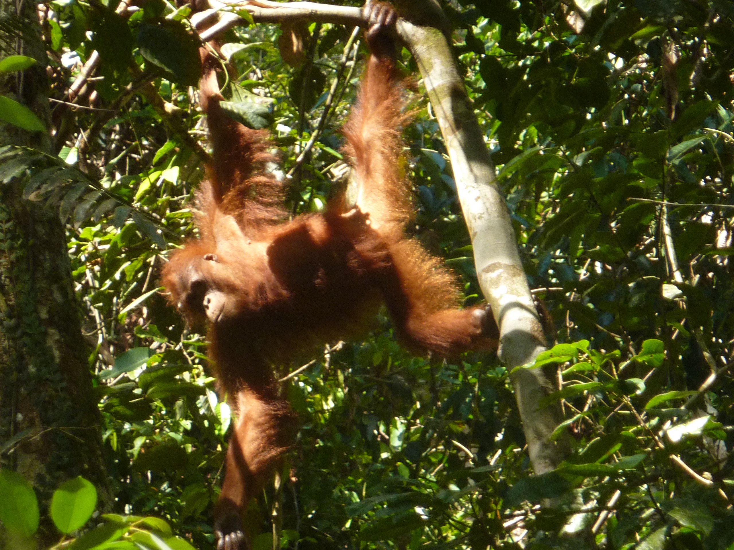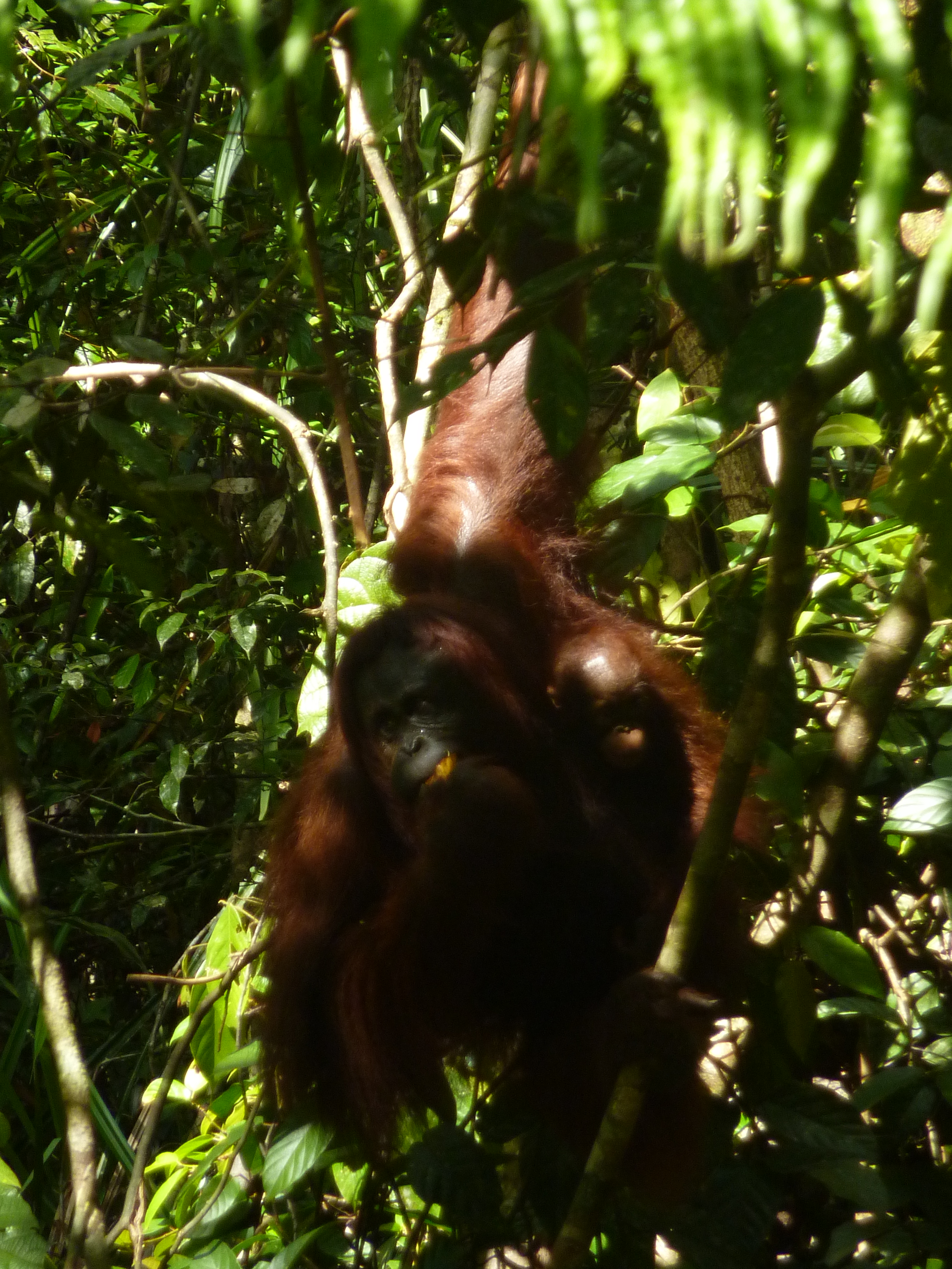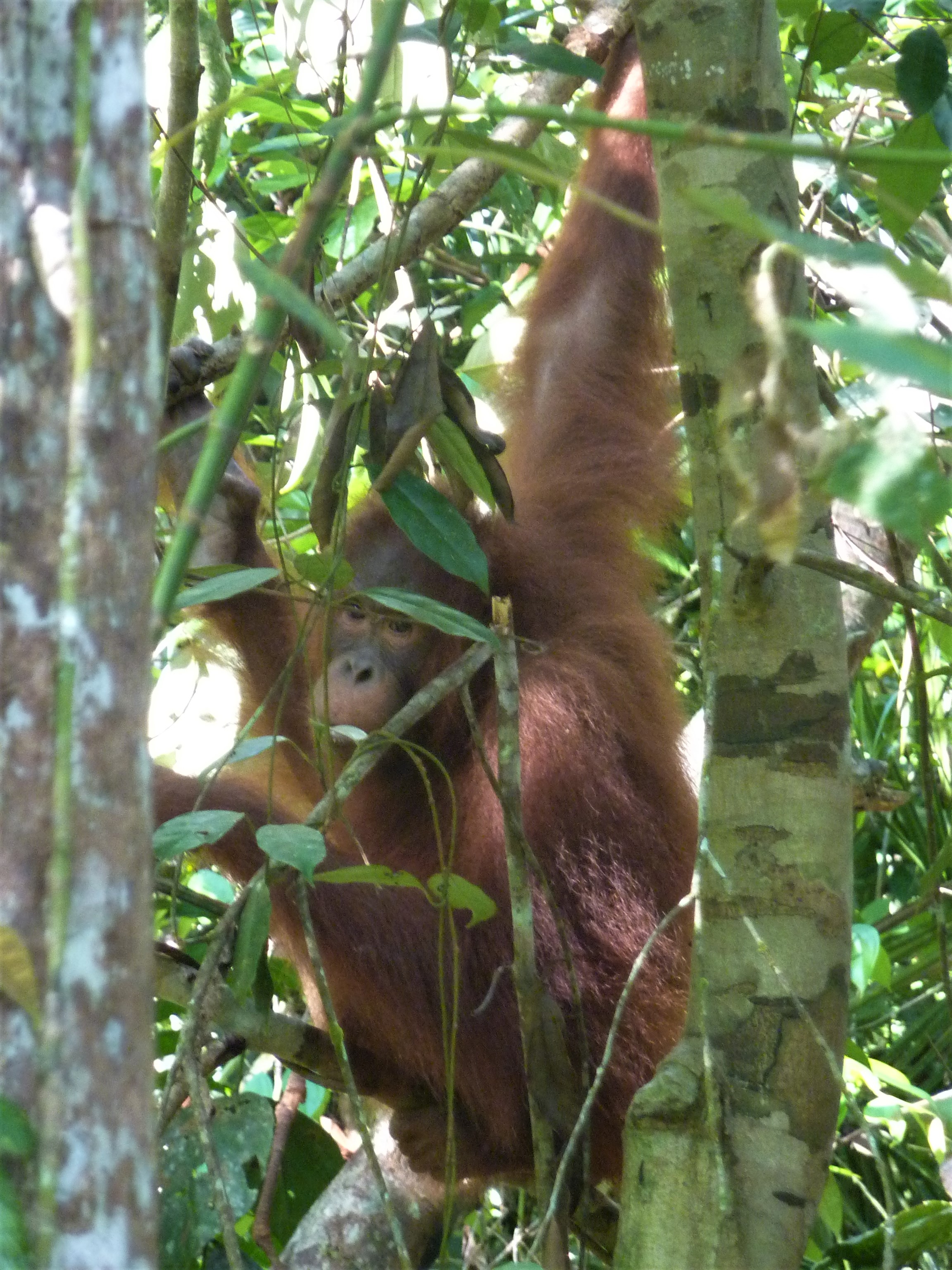 The last orangutan in the group was shyest of all but did seem interested enough to give us a quick look. We were utterly still watching them move and interact and forage. They were all so gentle with the youngest. It was incredible to be so close to such intelligent and inquisitive cousins of ours out in the wilds. We were humbled beyond belief in this experience.