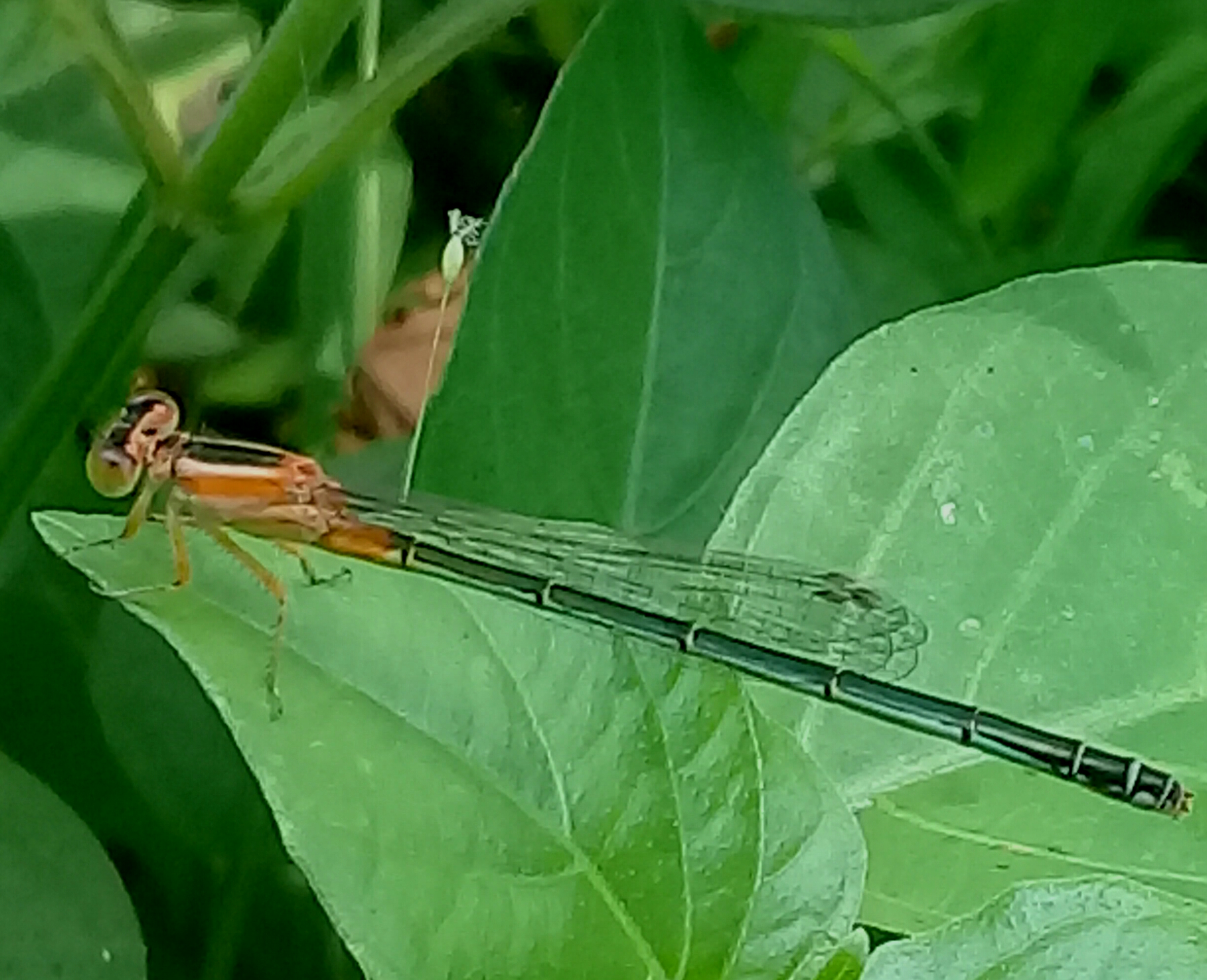 welcome to my blog today I will present you with a few pictures of needle dragonflies with three types of dragonflies that I managed to shoot with my mobile camera.This dragonfly has a very different color. Of the three needle dragonflies, there are those who have orange, green and blue color combinations. This is a macro photography from me, and I am also very interested in taking pictures of this needle dragonfly because of its unique color.Needle dragonflies are small dragonflies who like to land in this area and dragonflies do not fly much like dragonflies in general. And you can see clearly click on the picture see full screen.