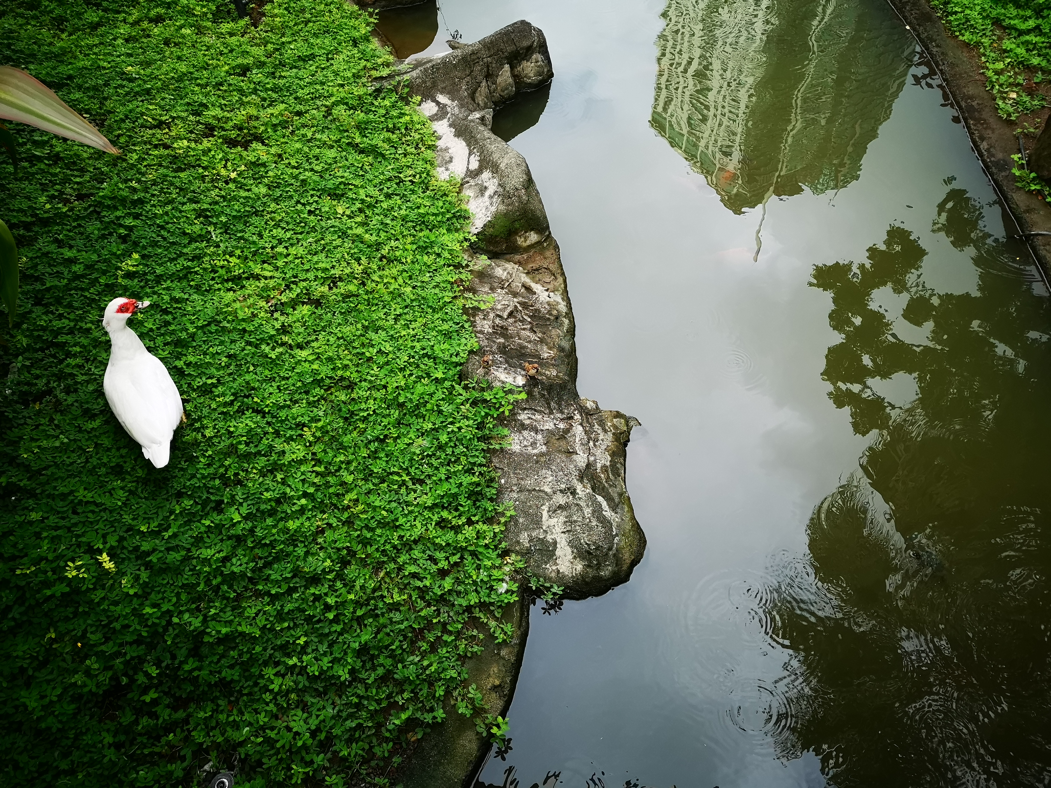 Trying to enhance my photographic skills. I captured this at my favorite park. The green grass in contrast with the white duck.