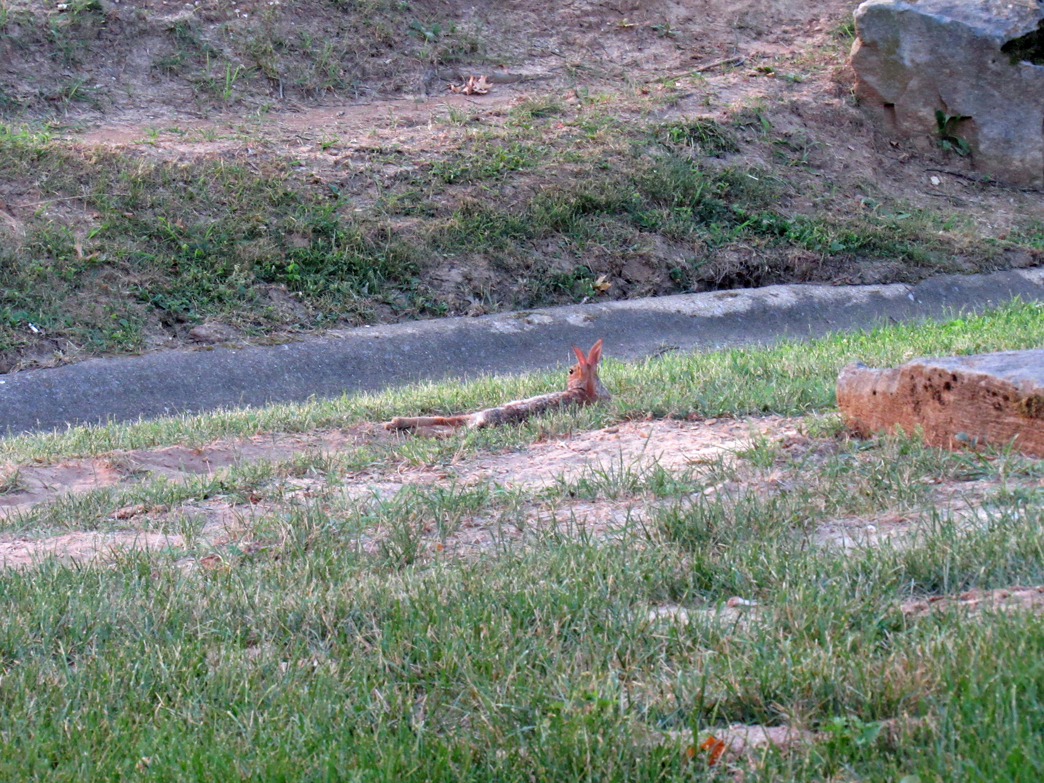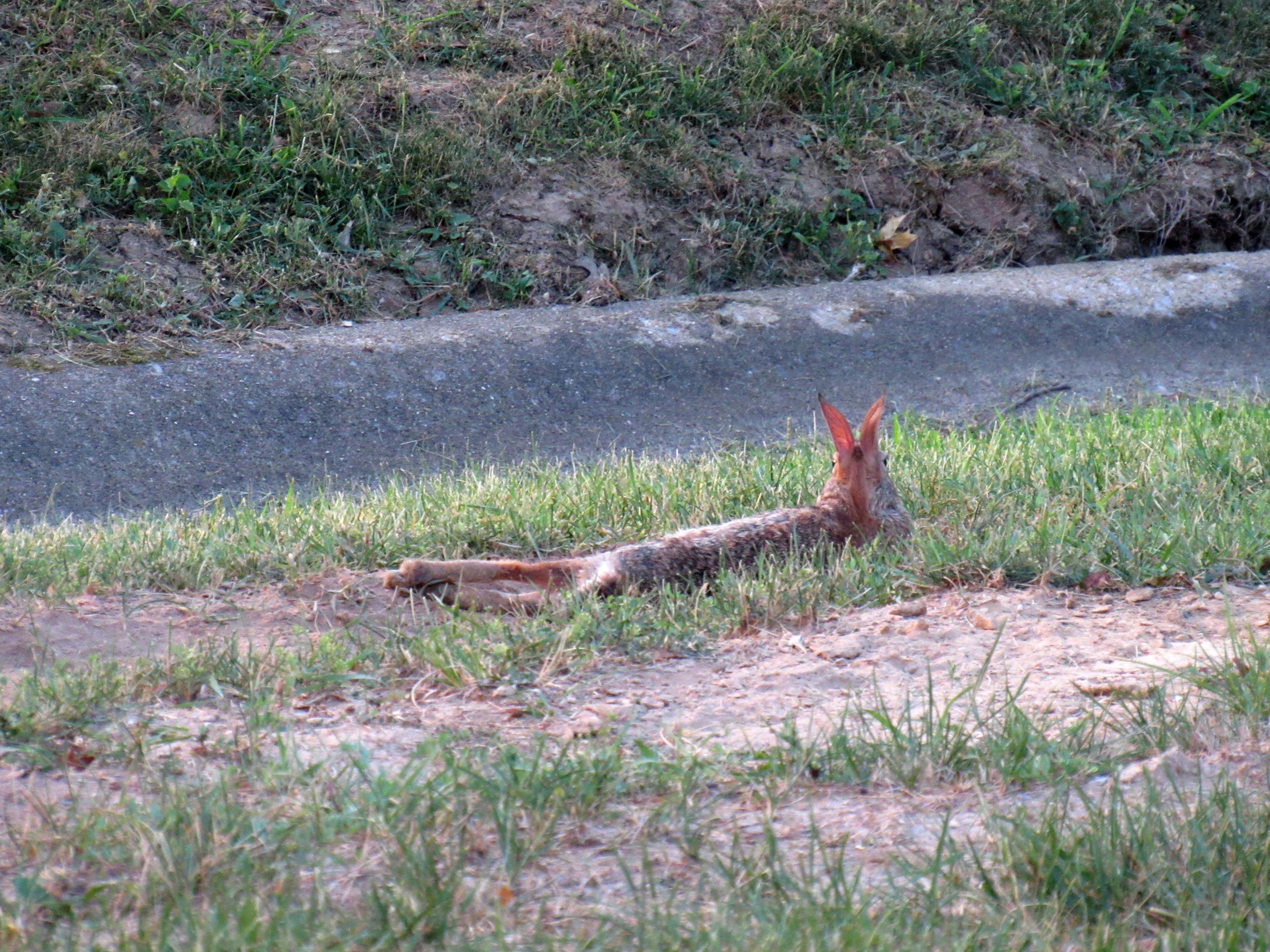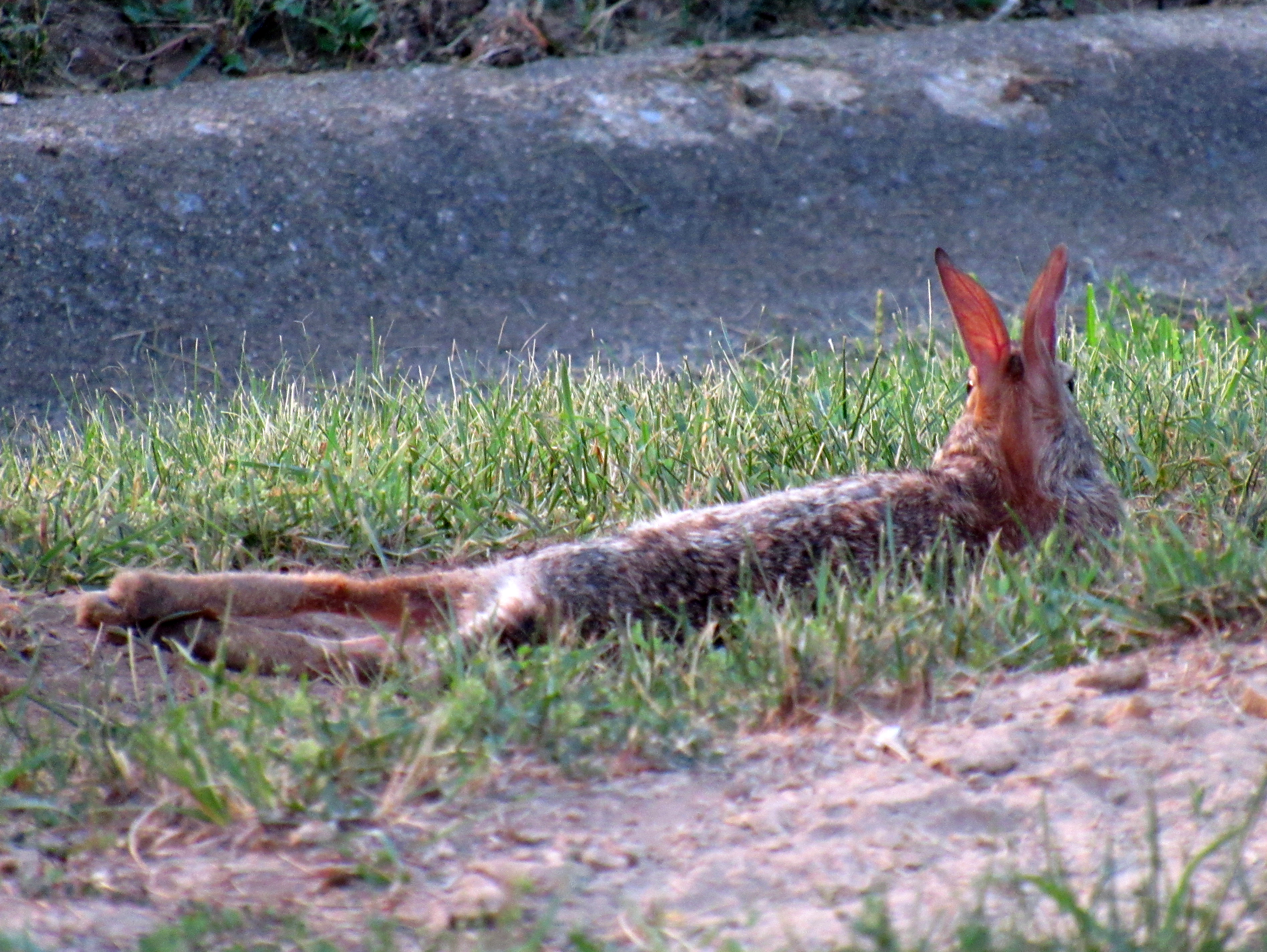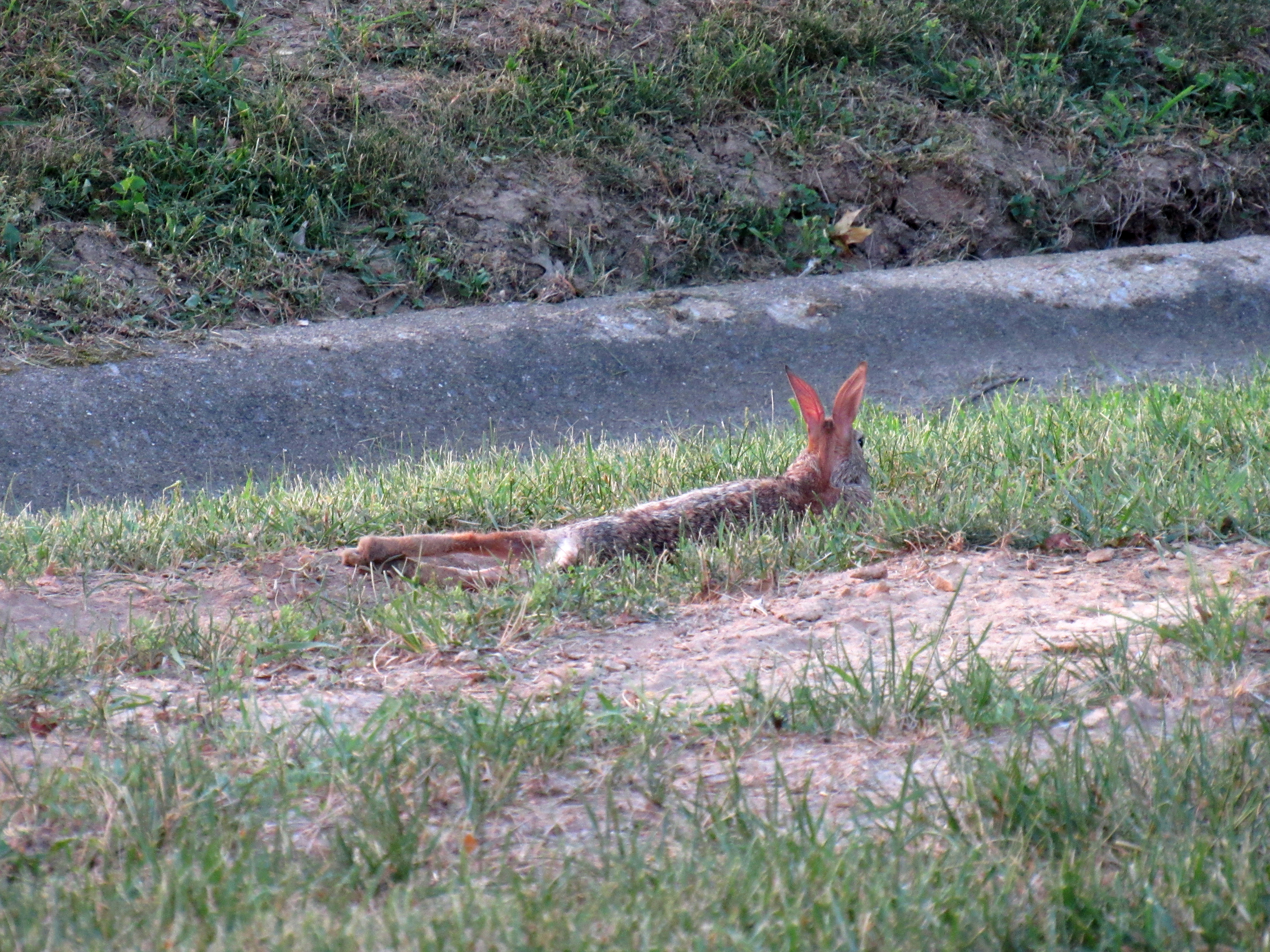 This is our neighborhood bunny and sometimes she likes to take naps in the nearby dust patch.