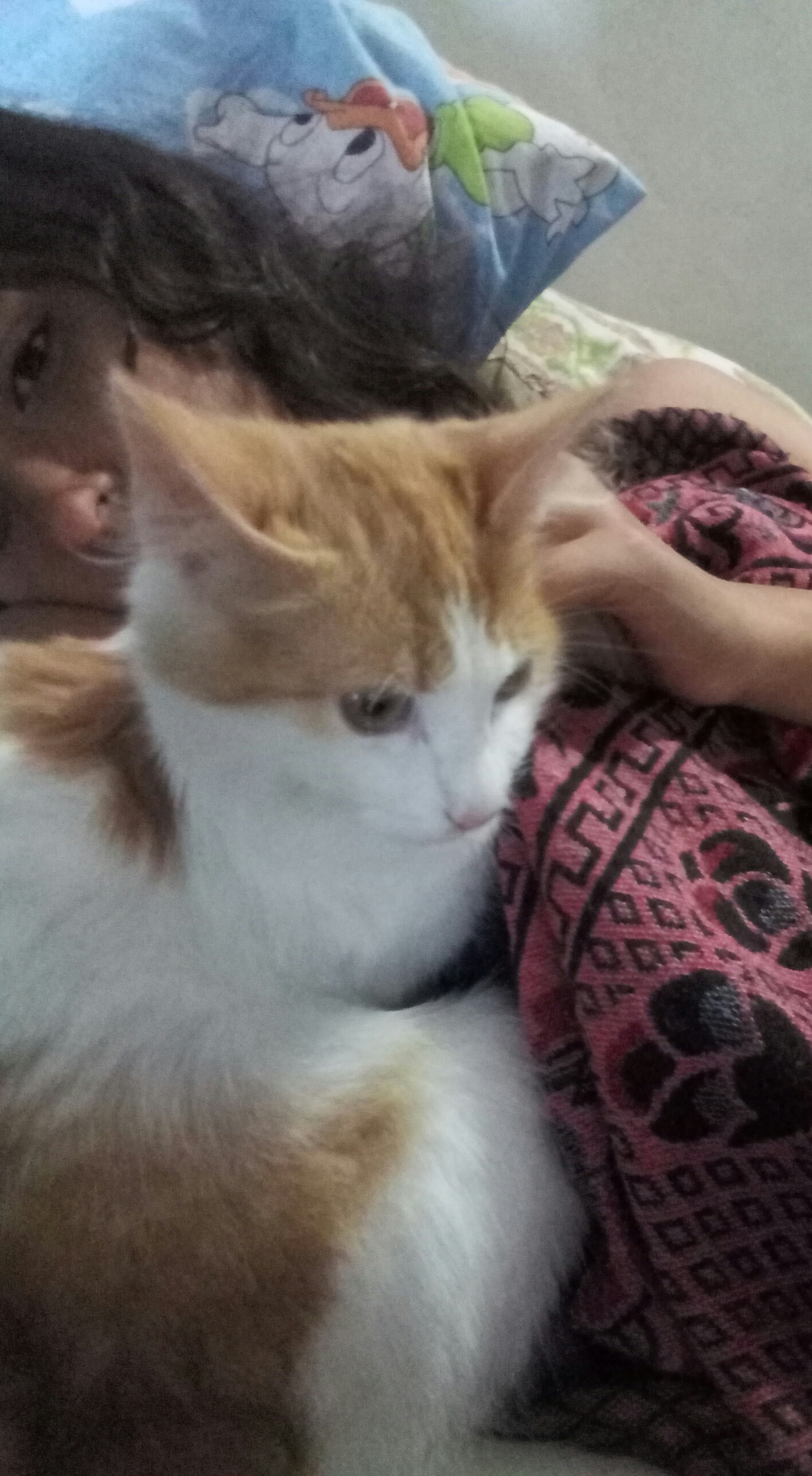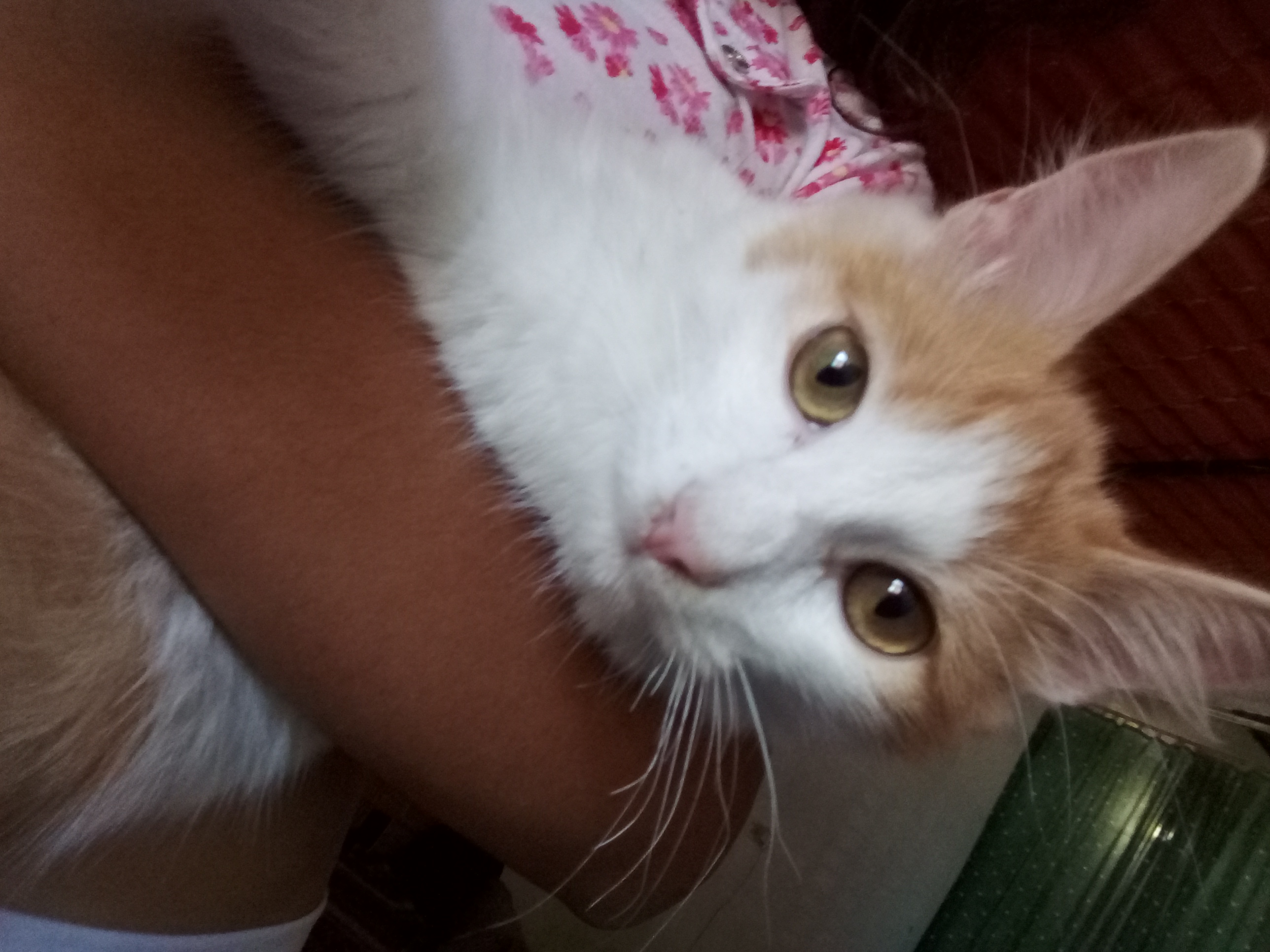 Este minino hermoso se llama pelusa, si pelusa aunque es macho, tiene aproximadamente 9 meses de edad.