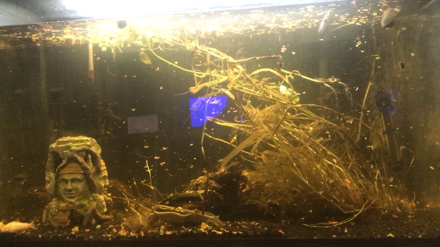 I plan on getting a few mollies and guppies from another fish dork like me, which will fill the empty space in the top of the tank. In the video, you can tell the plants are starting to grow new sprouts, which is awesome to see that it will fill up naturally and get greener as time goes! All it needs is a Steem fish tank ornament ! haha