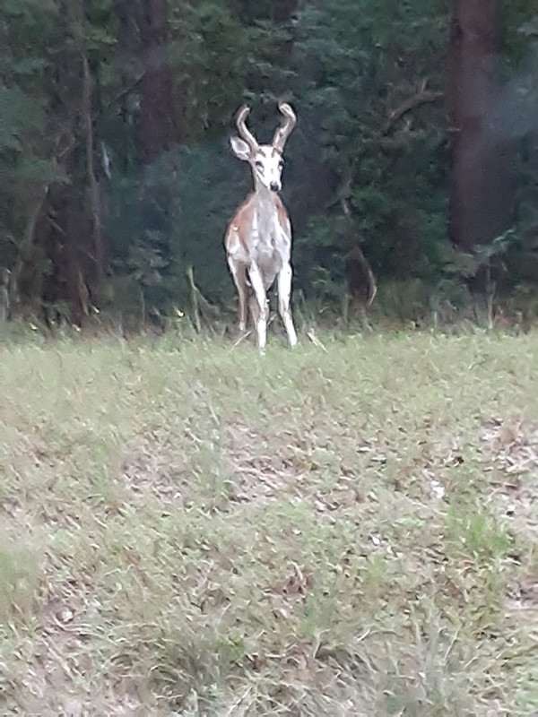 He stood still just long enough for me to get a couple blurry shots, then bounded back into the forest. The nearby ranger station was closed, so I couldn't go in to get more info, but the pattern reminded me of those seen in piebald snakes. Turns out, piebaldism does occur in less than 2% of white-tailed deer, making this a really cool encounter!
