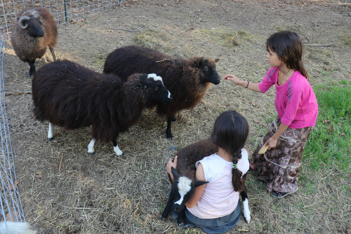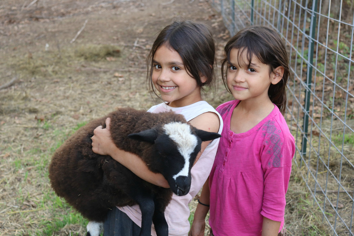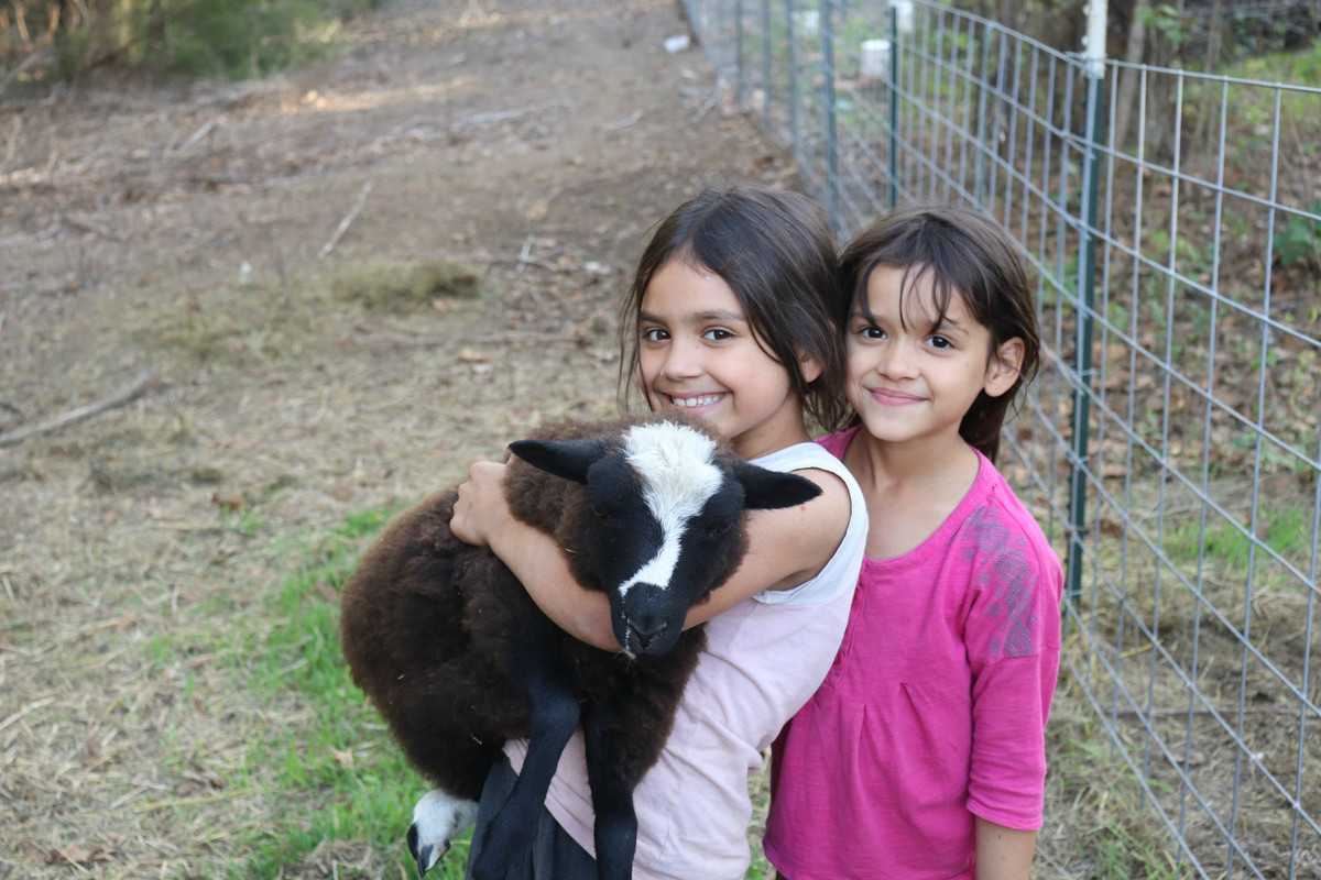 The girls are so good at helping out with the animals!