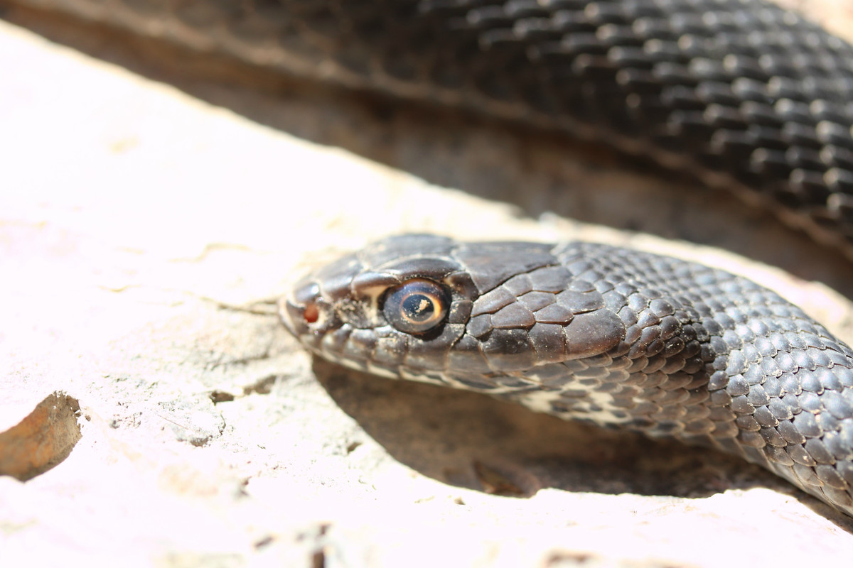 That snake has some pretty cool eyes!