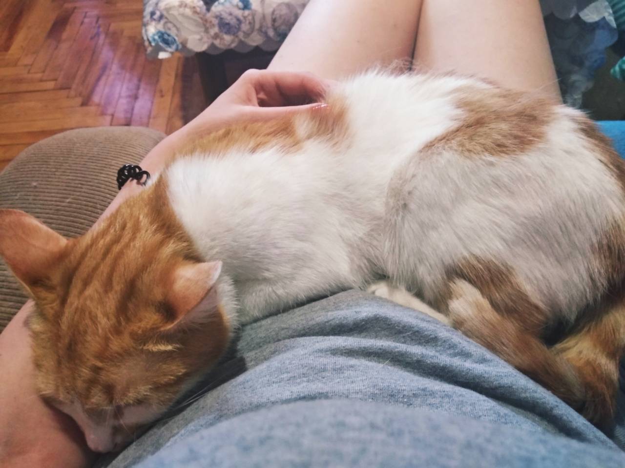 I want to say a few words still relatively new member of the family - Mia. She is the opposite of Yen. She really loves to worry about her. She will not let a man rest just on the couch. After all, she always clings to his hands and waits until it begins to scratch))It pleases it with a loud nibbling and saliva, from which bubbles inflate their mouths))
