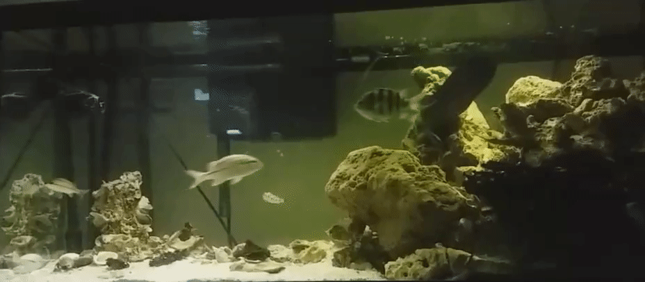 Full Frontal view of the tank. I am sitting in a chair that I keep here to watch the fish while I read, or check e-mails and other things on my phone. Kinda my little quiet space where I get to enjoy creatures from the wild and observe their behavior, their stress levels, the well being, and make sure they are eating and not picking on each other.