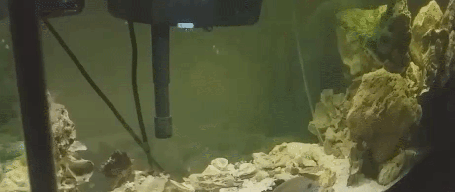 The big tank has the rocks moved over to the right so there are room for the fish to swim, or to hide in the rocks if they wish. They horseshoe crab in my other post also needed the extra open space to bury and to swim.