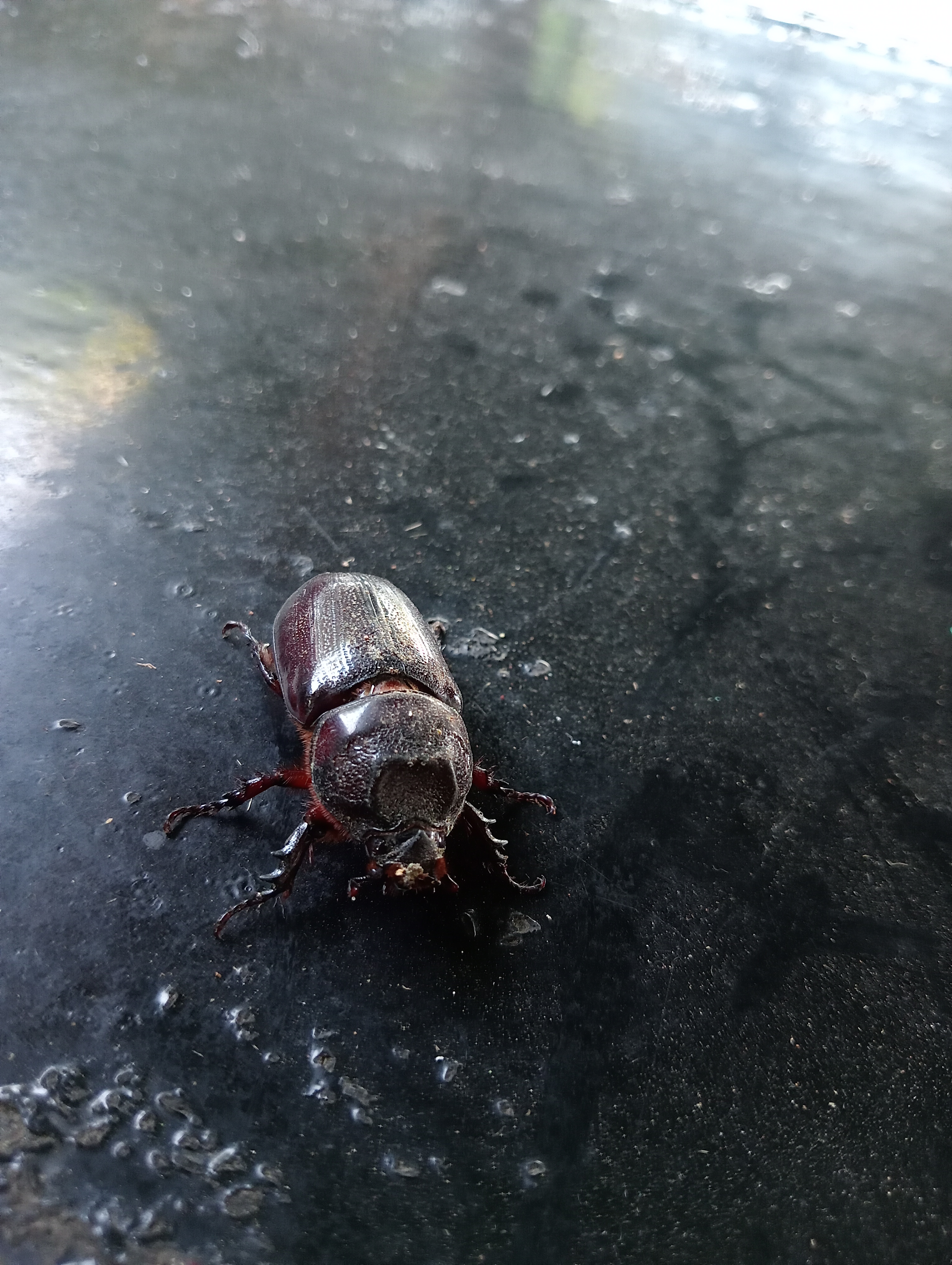 The rhinoceros beetle is an animal that lives between tana and plants, it always roams above the surface of the ground, because it prefers to live on the ground rather than having to hang on a tree.