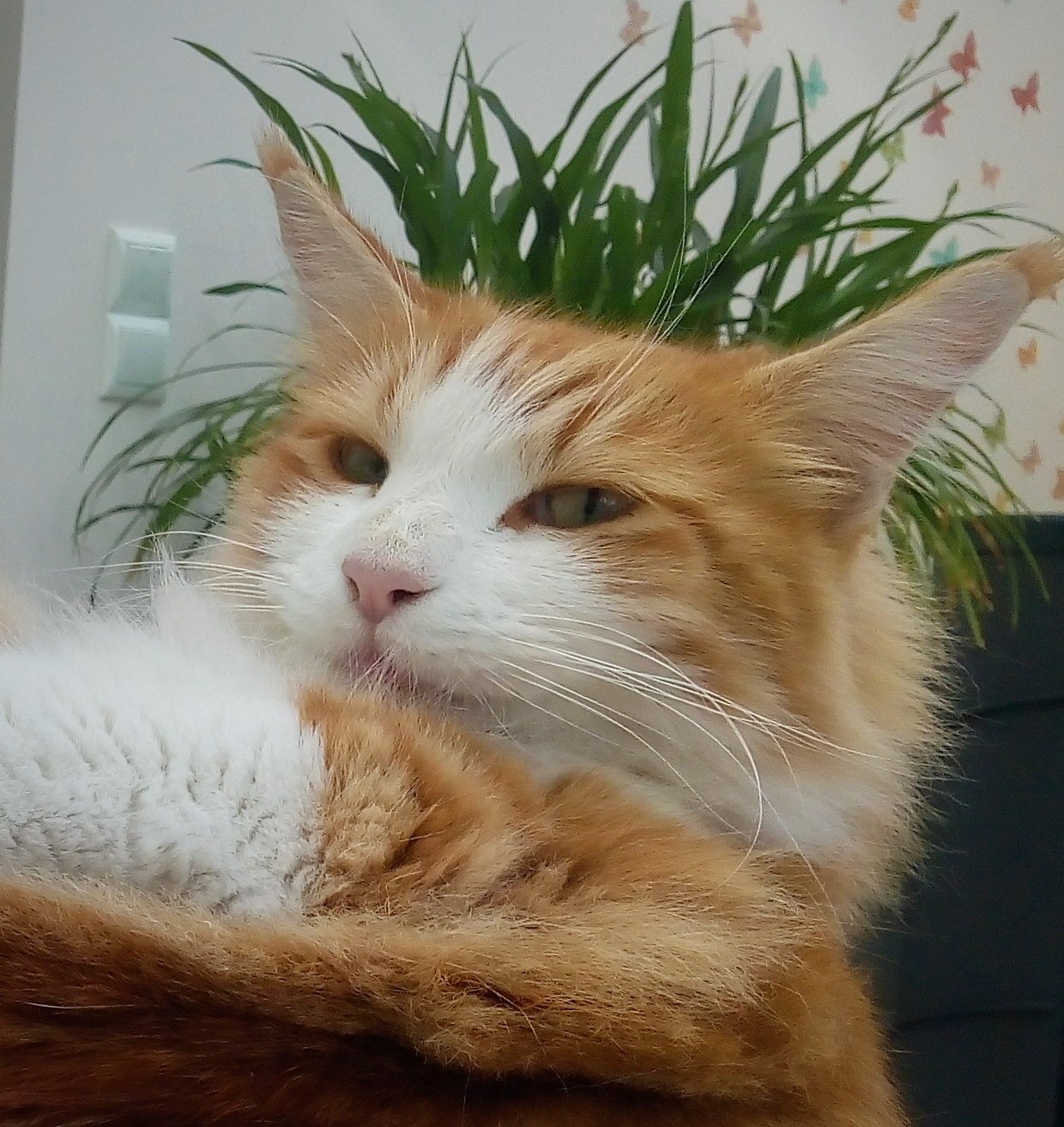 Do you like me with green hair?nilom (59)in #animalsphotocircle • 5 years ago (edited)Maine coon Radja in a funny position on the picture camera device details : motorola X11771Moto E4plus #animals #photocircle #dailypetphotography #dpet #cats #smartphonephotography