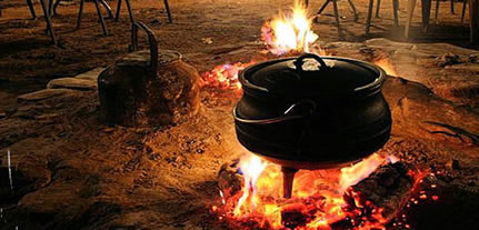 Family and friends gather and chat well into the night when spending an evening together around the pot, this has developed into quite a large tradition in having "potjie kos" competitions, a tasters treat having exceptional chefs showing off their recipes, meat selection obtaining brilliant tastes (then swilled down with a beer)_. Source