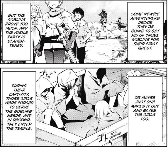 The Goblin Raids remind me of the Rape of Nanjing, Rwandan Rape, and War Crimes. Survivors would either go insane, get rejected by their families, or live under the protection of the temple because they have no where else to go. If the manga does explore these realities than showcasing more action, the dark fantasy genre takes on a serious turn to being a reflection of our reality. But that’s not what we really want as a reader right? It’s best not to focus on those matters because we’d get less fans to stomach the story.