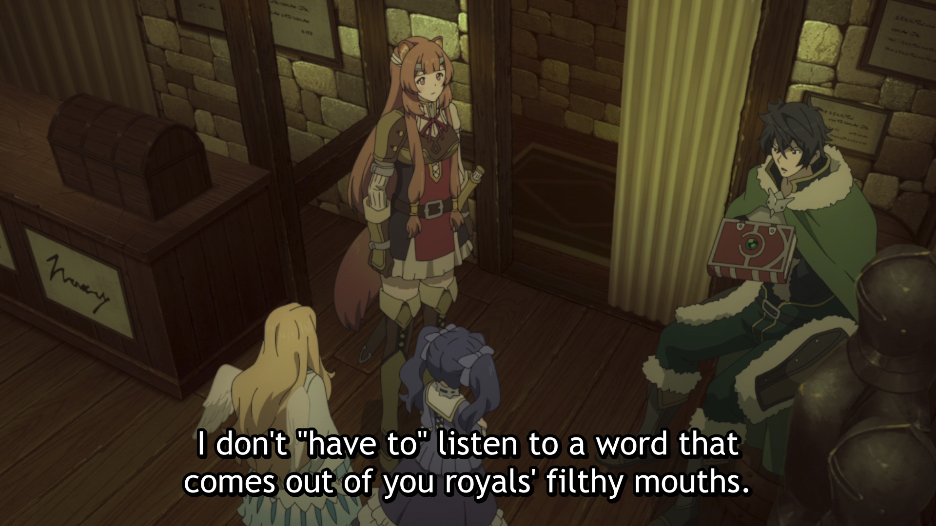 Recently in the series (as of episode 12), Naofumi has gained enough power to start fighting back against the system thanks mostly to the shield powers derived from his feeling of hate. This is where I believe the show will explore a second set of ideas. After having been screwed by the system for so long, Naofumi feels cold and angry, leading him to take his rage out on uninvolved people, such as Melty. Getting back at the king for wronging him truly made a good scene and it felt just right for revenge, but allowing that to go unchallenged would undo all the good the show has done so far. Progress is never made by antagonizing everyone, so Naofumi has to change his attitude or risk losing all the goodwill build up from helping the citizens of the country. If anti-prejudice is supposed to be a theme, it would be best for the show to similarly criticize Naofumi's prejudice against the royal family, and women more broadly as well.