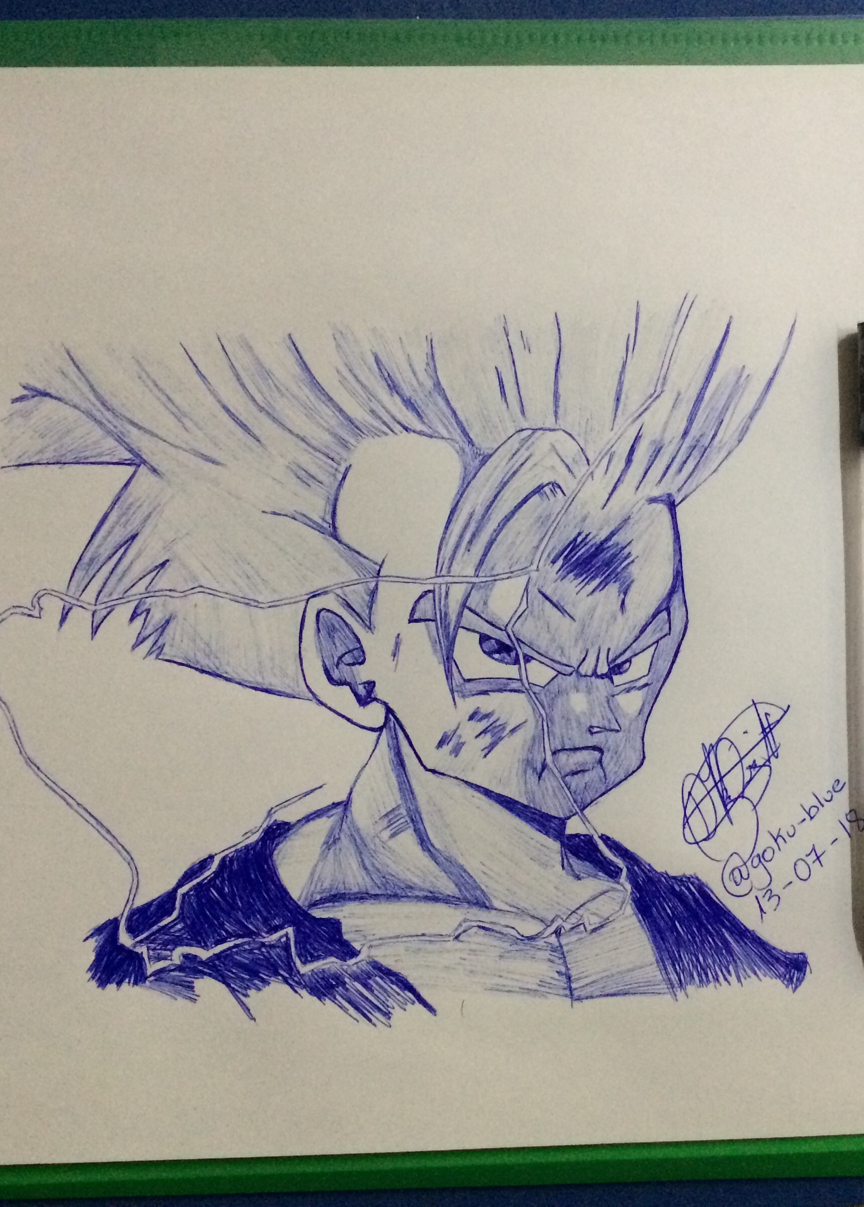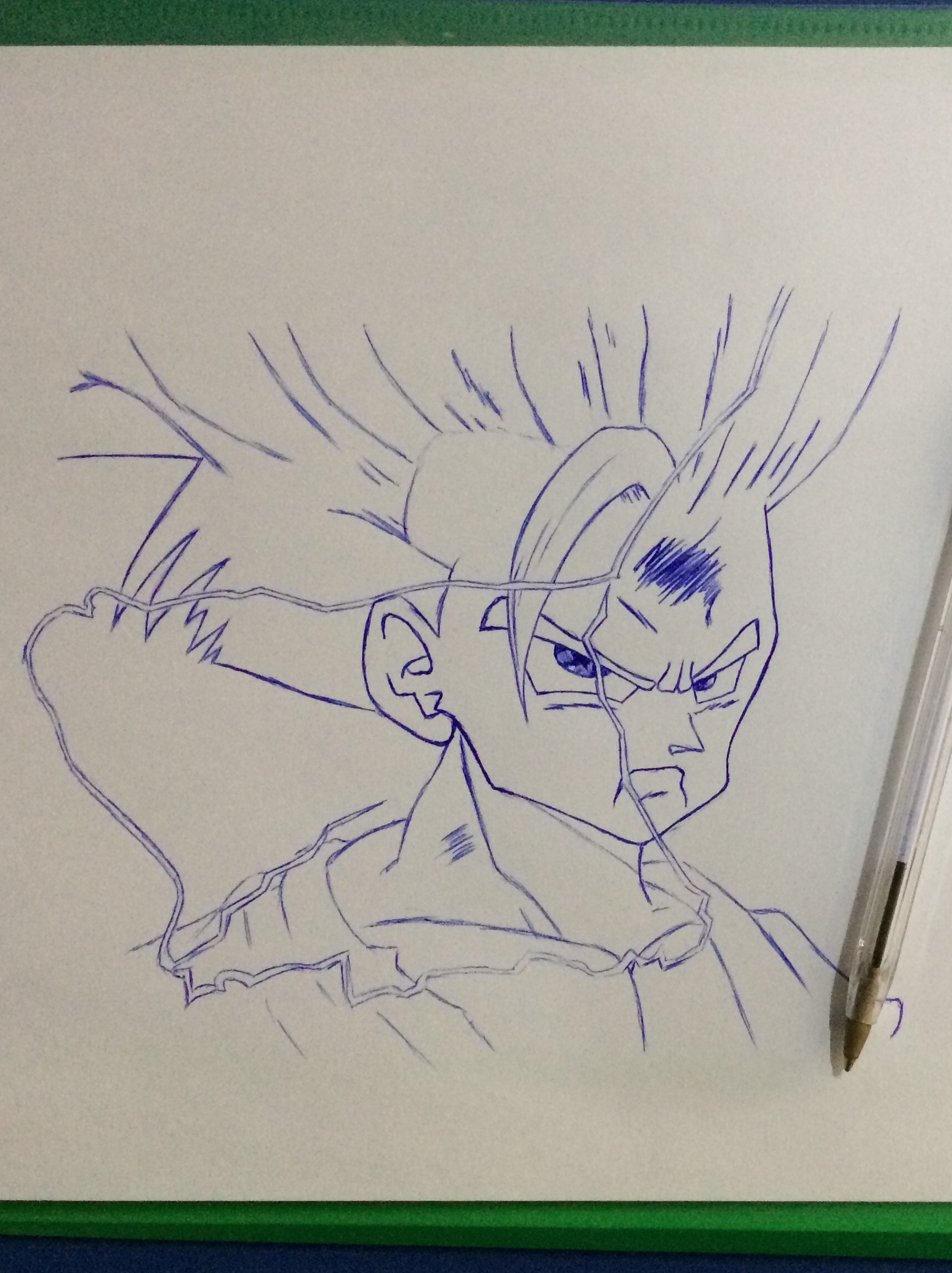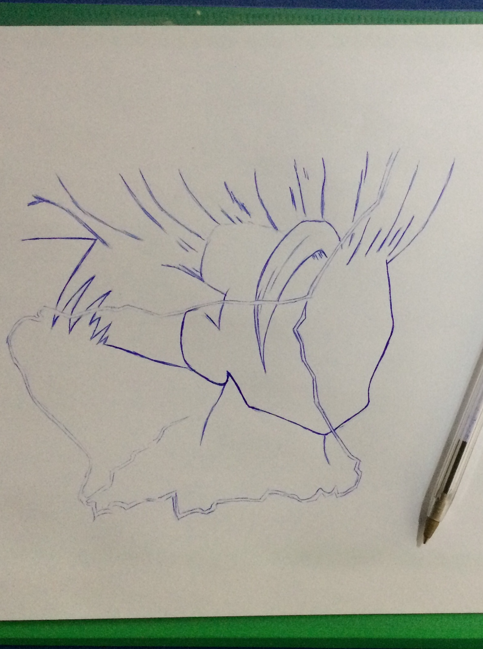 Estaba en mi trabajo y tenía un tiempo libre y se me ocurrió hacer un dibujo, pero tuve un problema. No tenía los materiales. Ni lápiz, entonces intente hacer con un bolígrafo común y corriente.