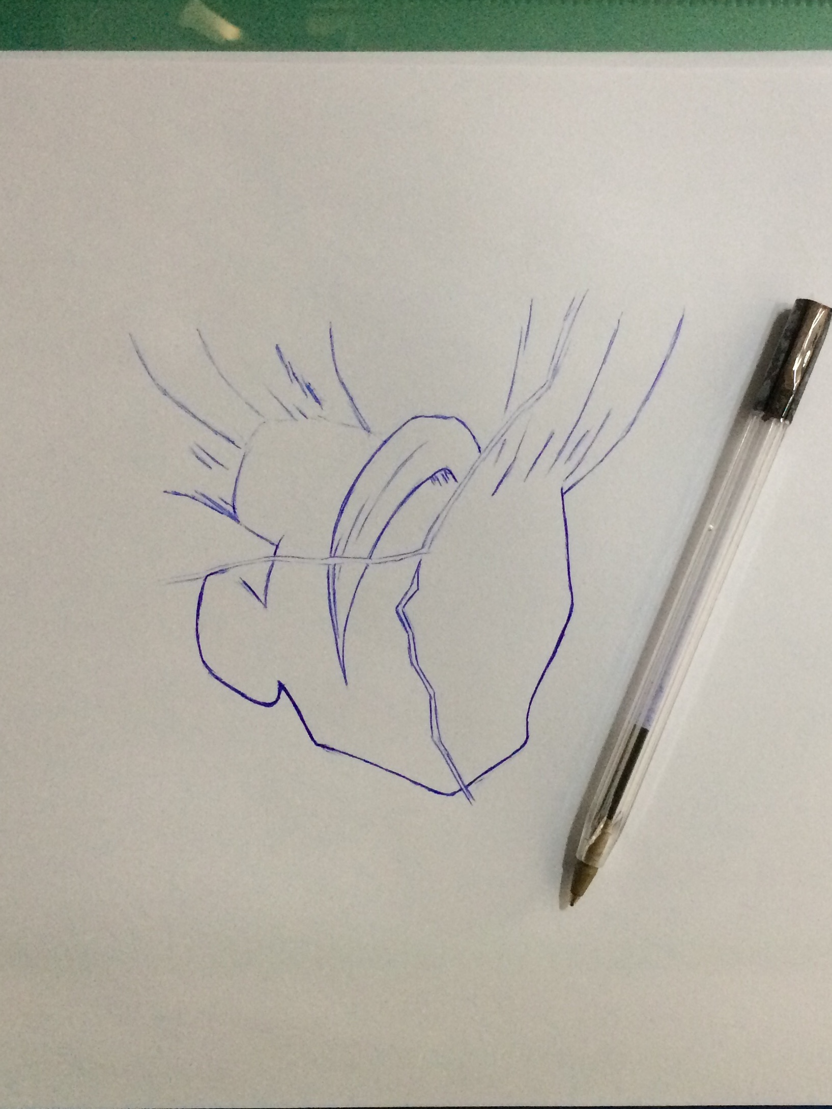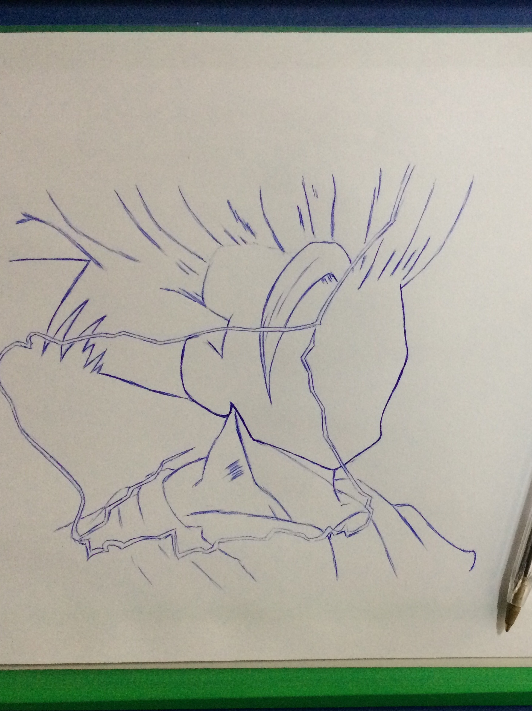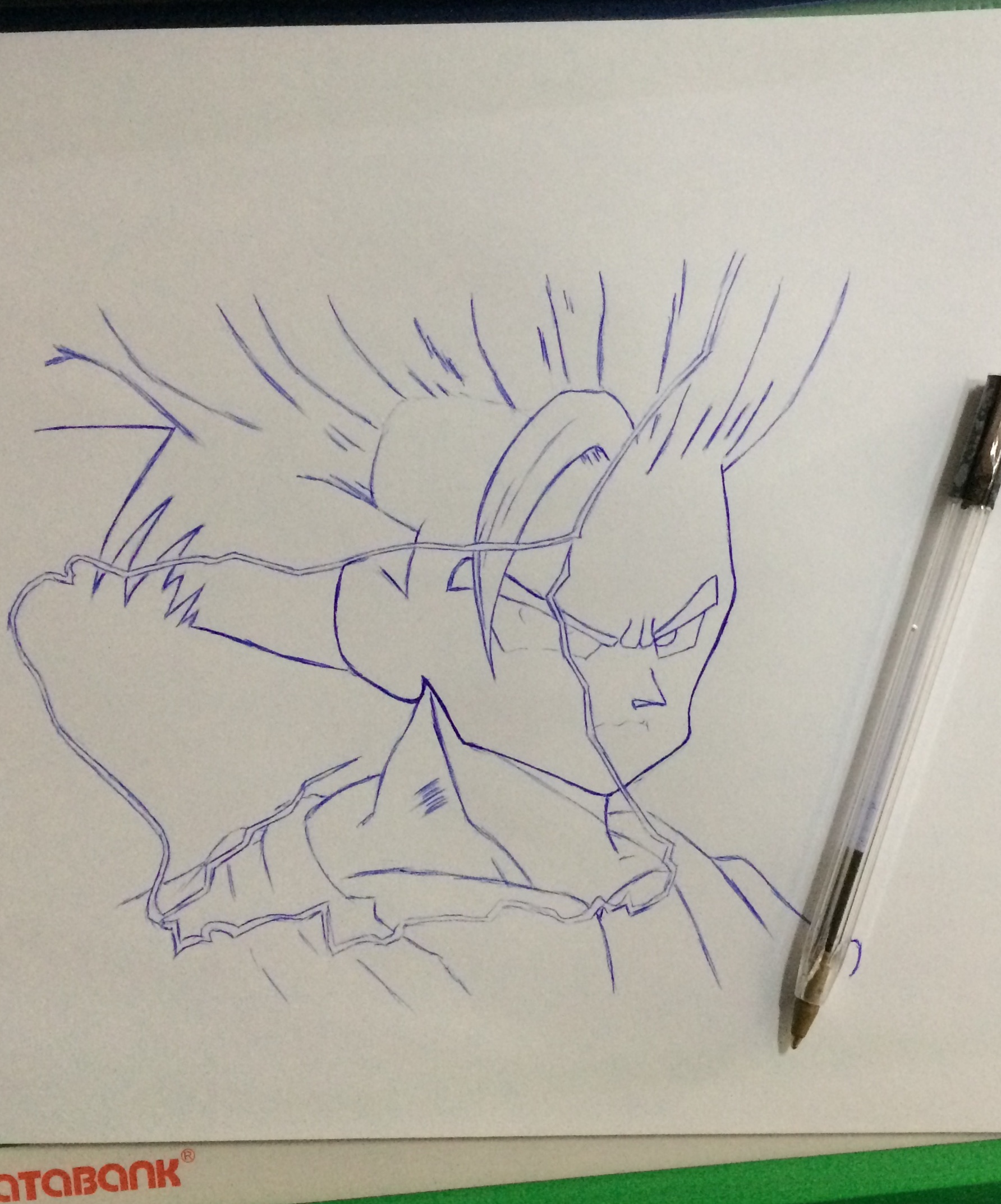 Estaba en mi trabajo y tenía un tiempo libre y se me ocurrió hacer un dibujo, pero tuve un problema. No tenía los materiales. Ni lápiz, entonces intente hacer con un bolígrafo común y corriente.