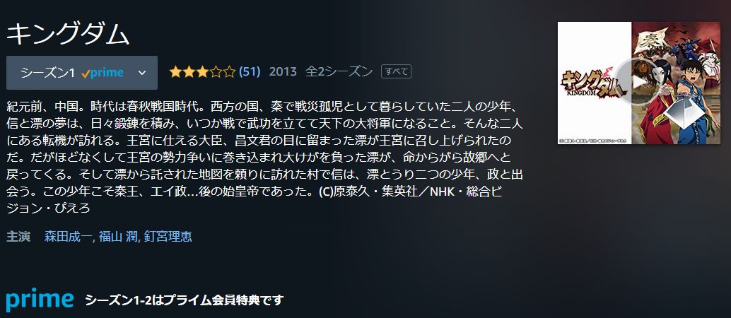 アマゾンでキングダムを第1シーズンと第2シーズンがプライムで見れて、ちょい気になって、第1話見たら、なんとハマってしまい、夜な夜なまで毎日数話見て先程第1シーズンを見え終えました。やーーー、やばい面白く、漫画はもっと面白いだろうなと。