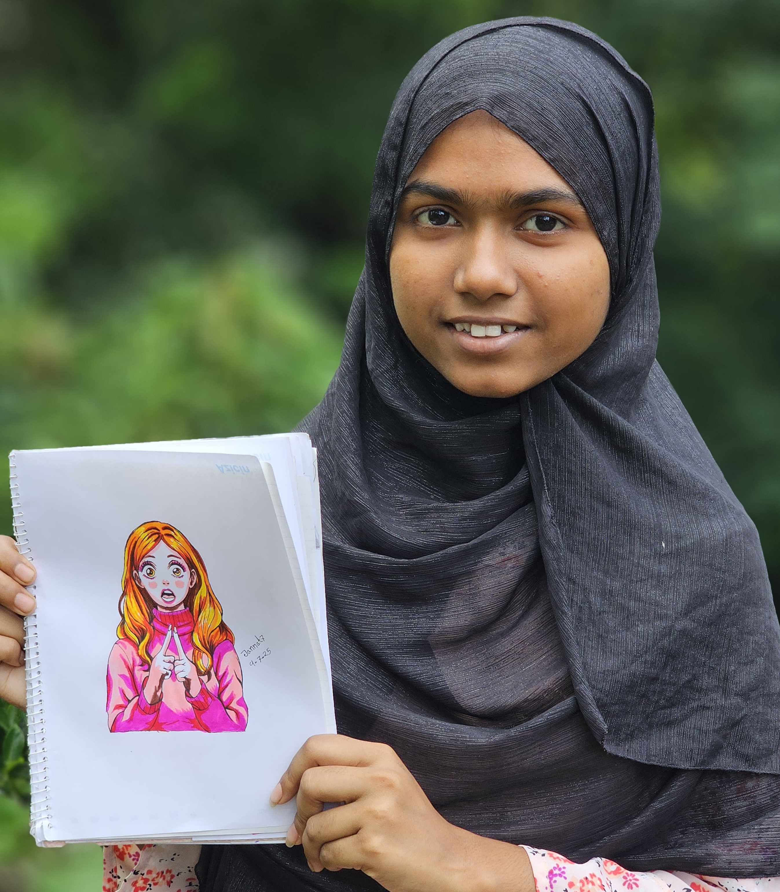 Then I colored the jacket the girl was wearing beautifully with colored pens.