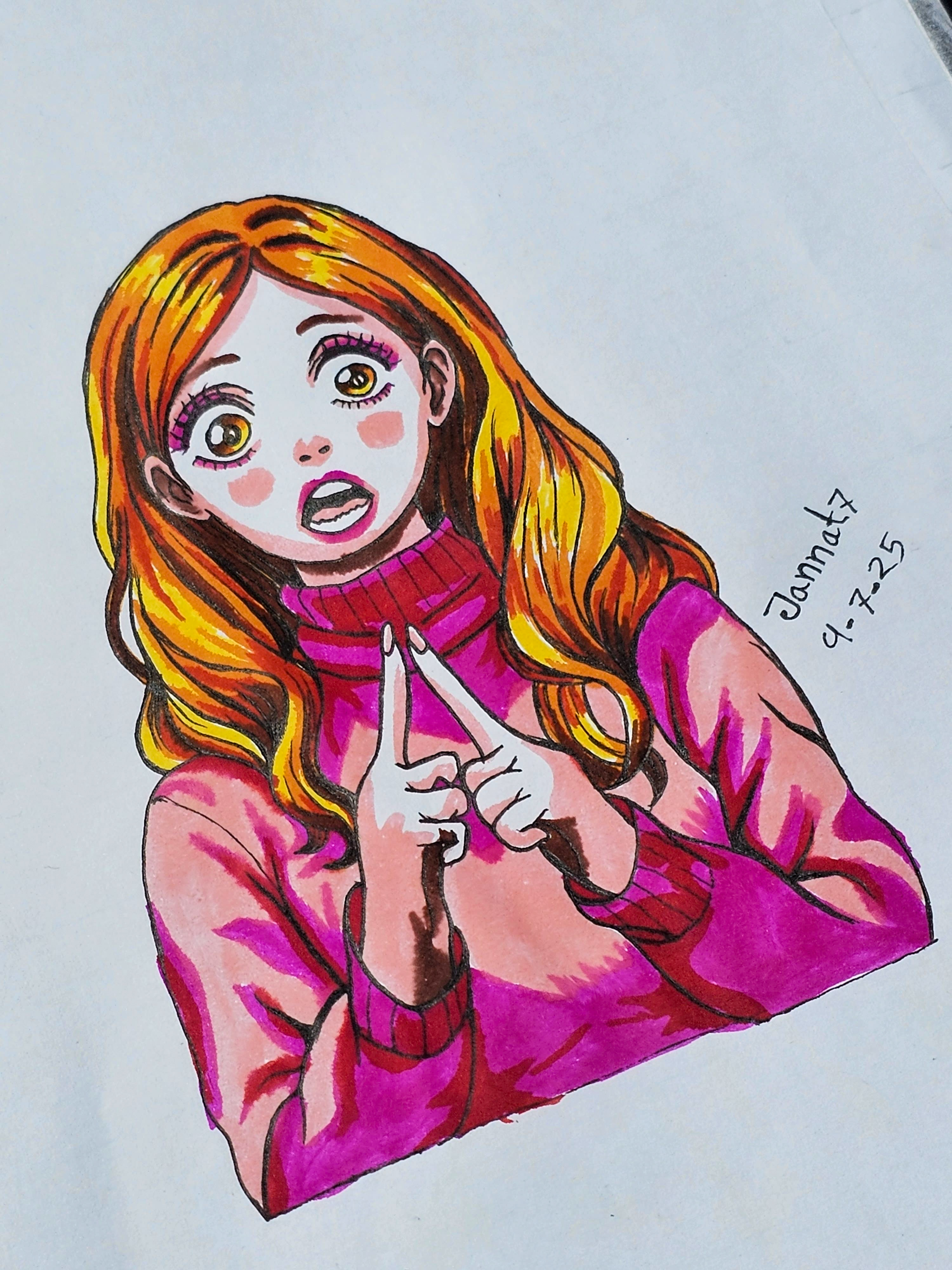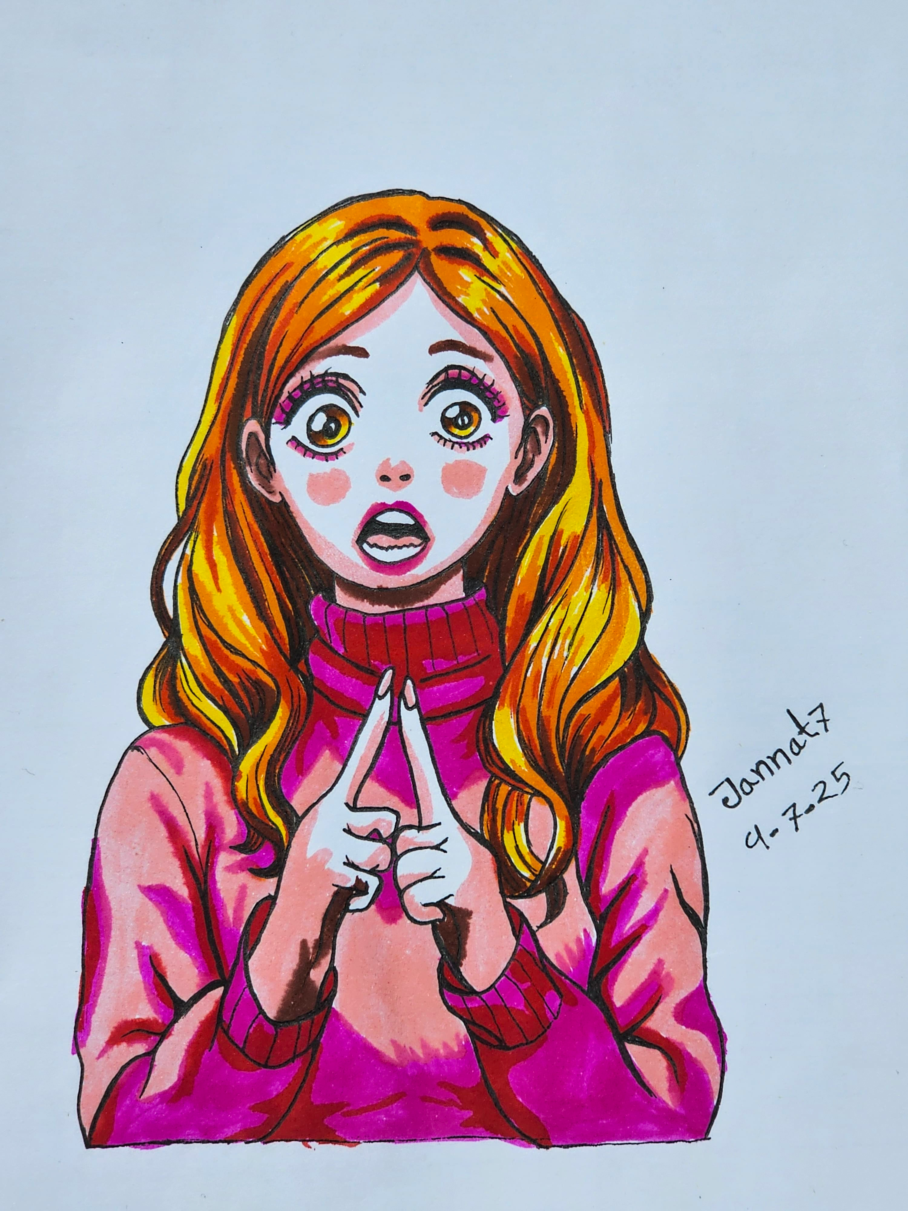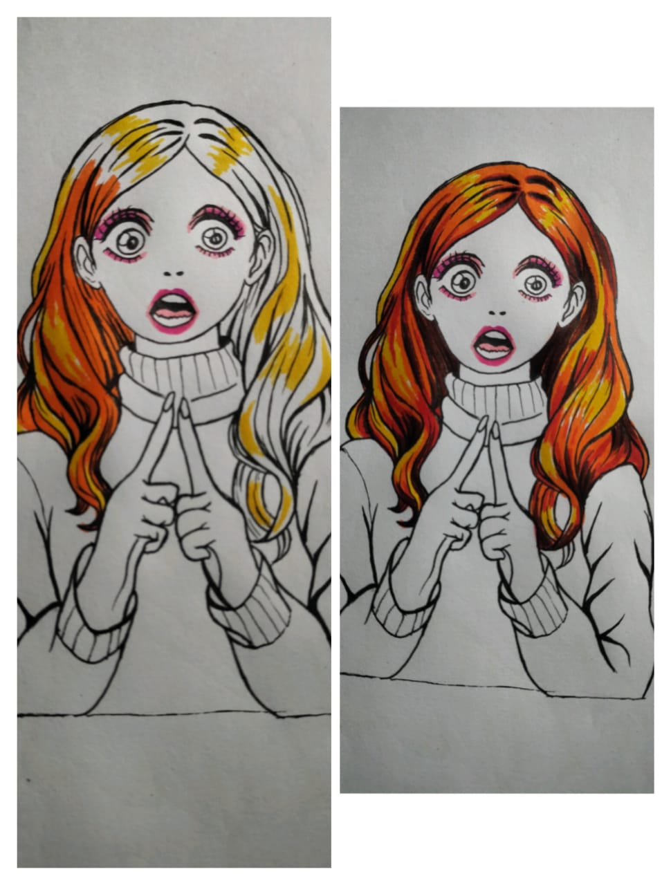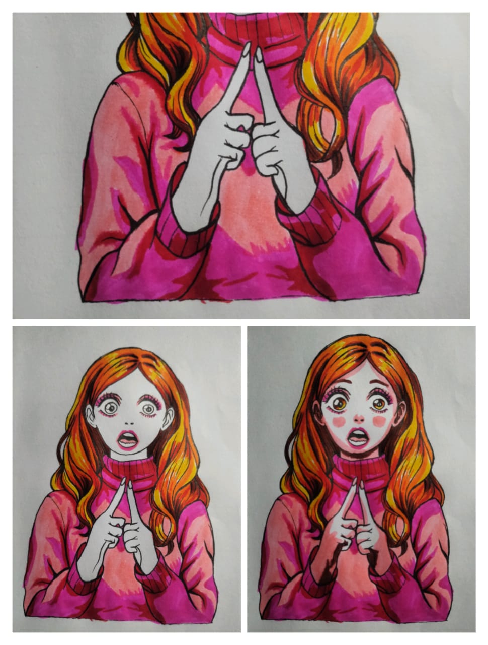 Then I colored the eyes, face, and hair beautifully with the help of colored pens.