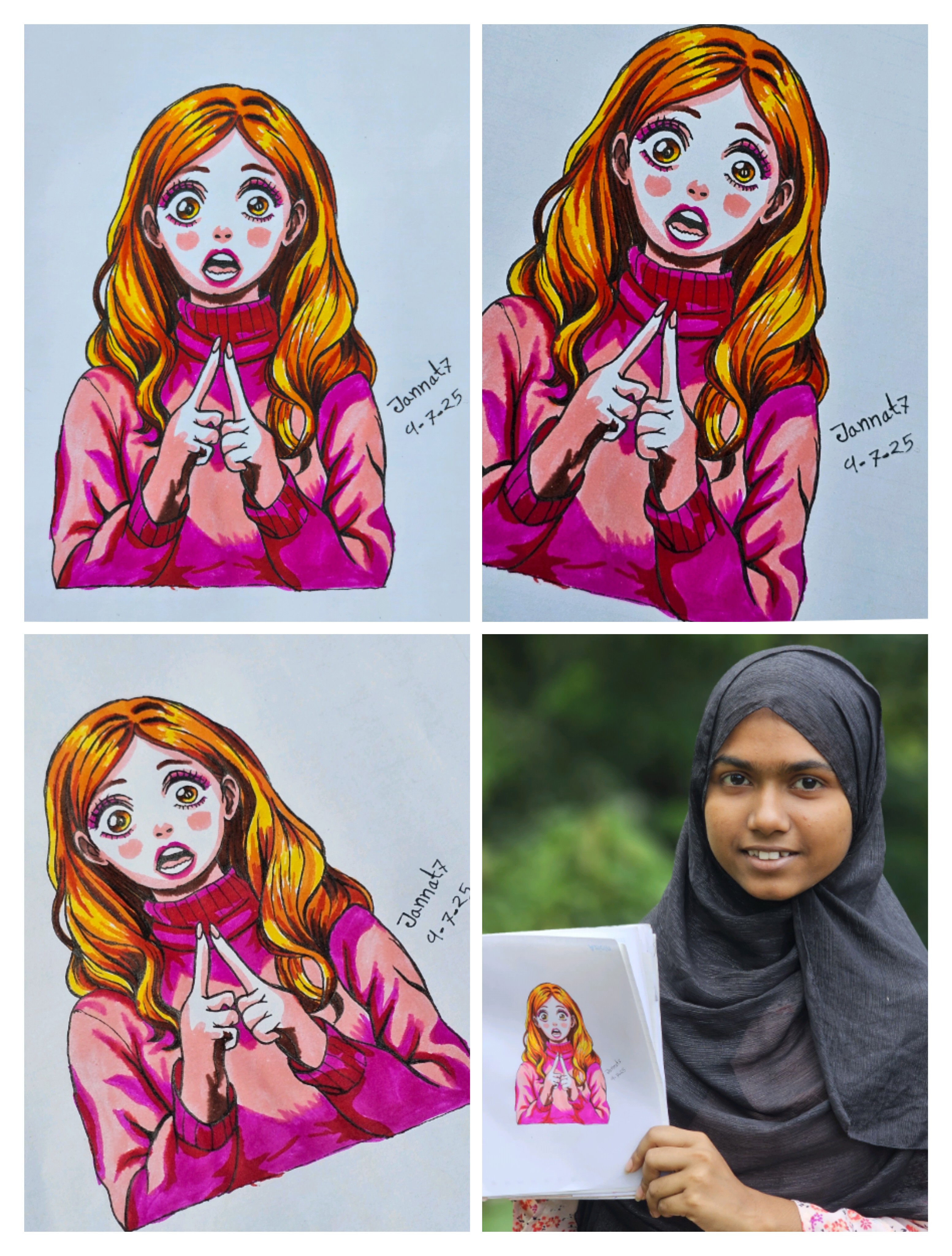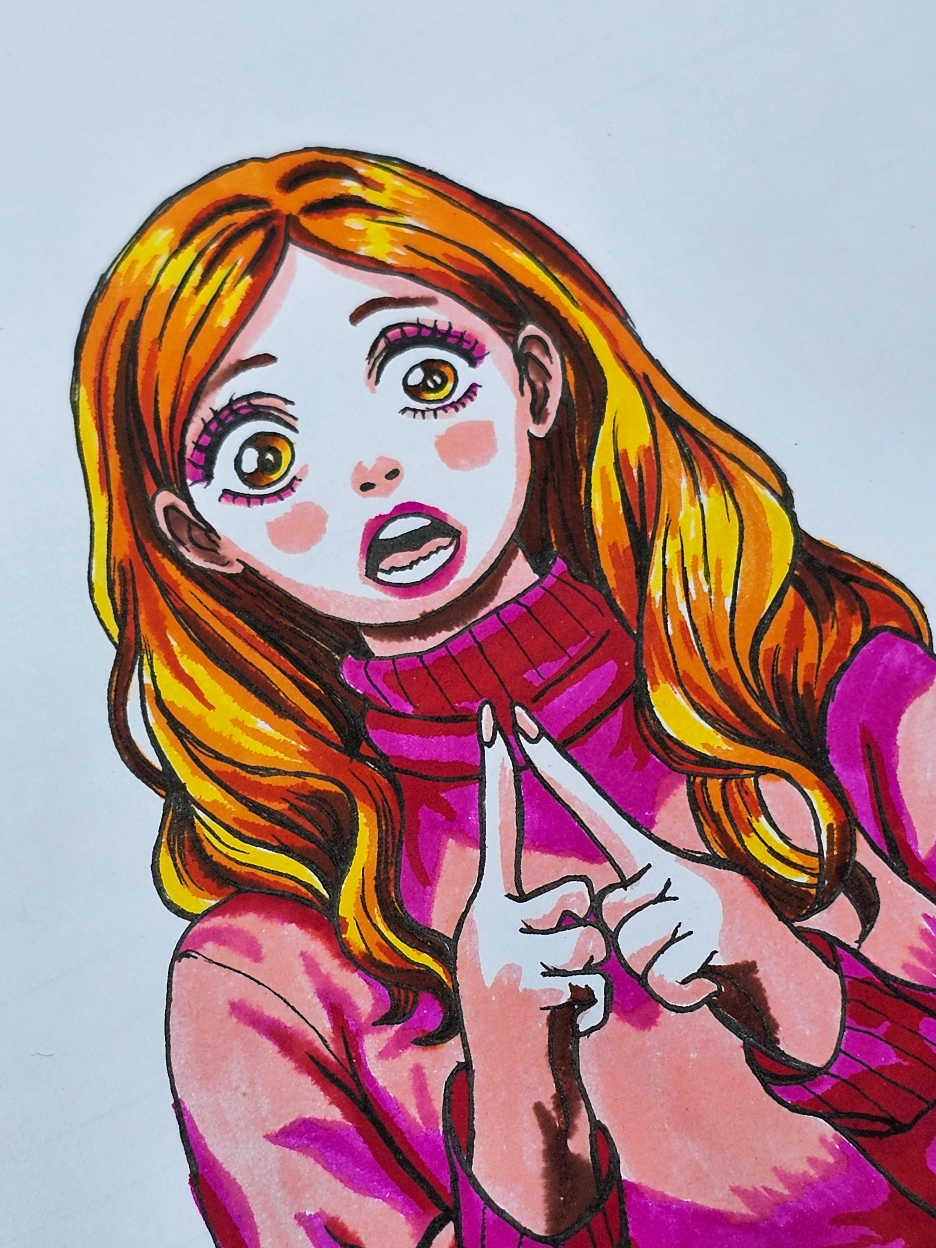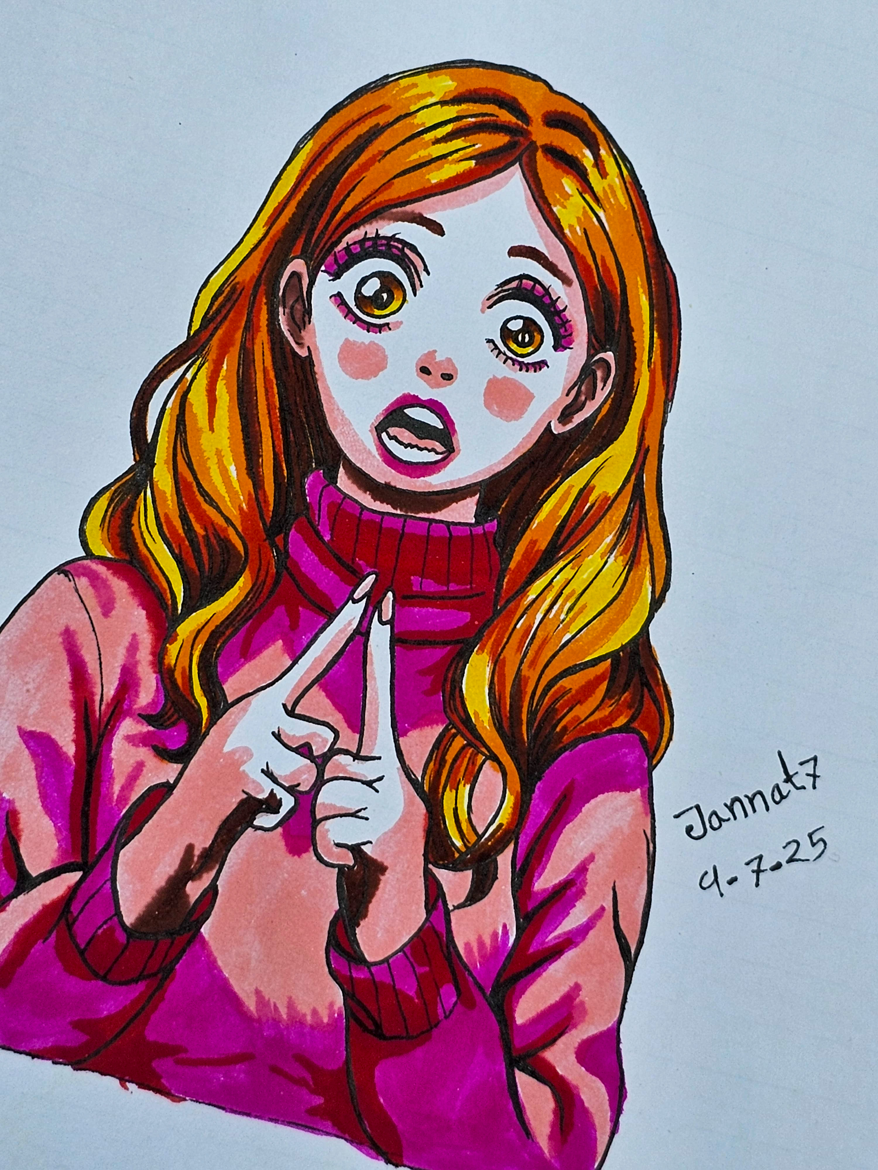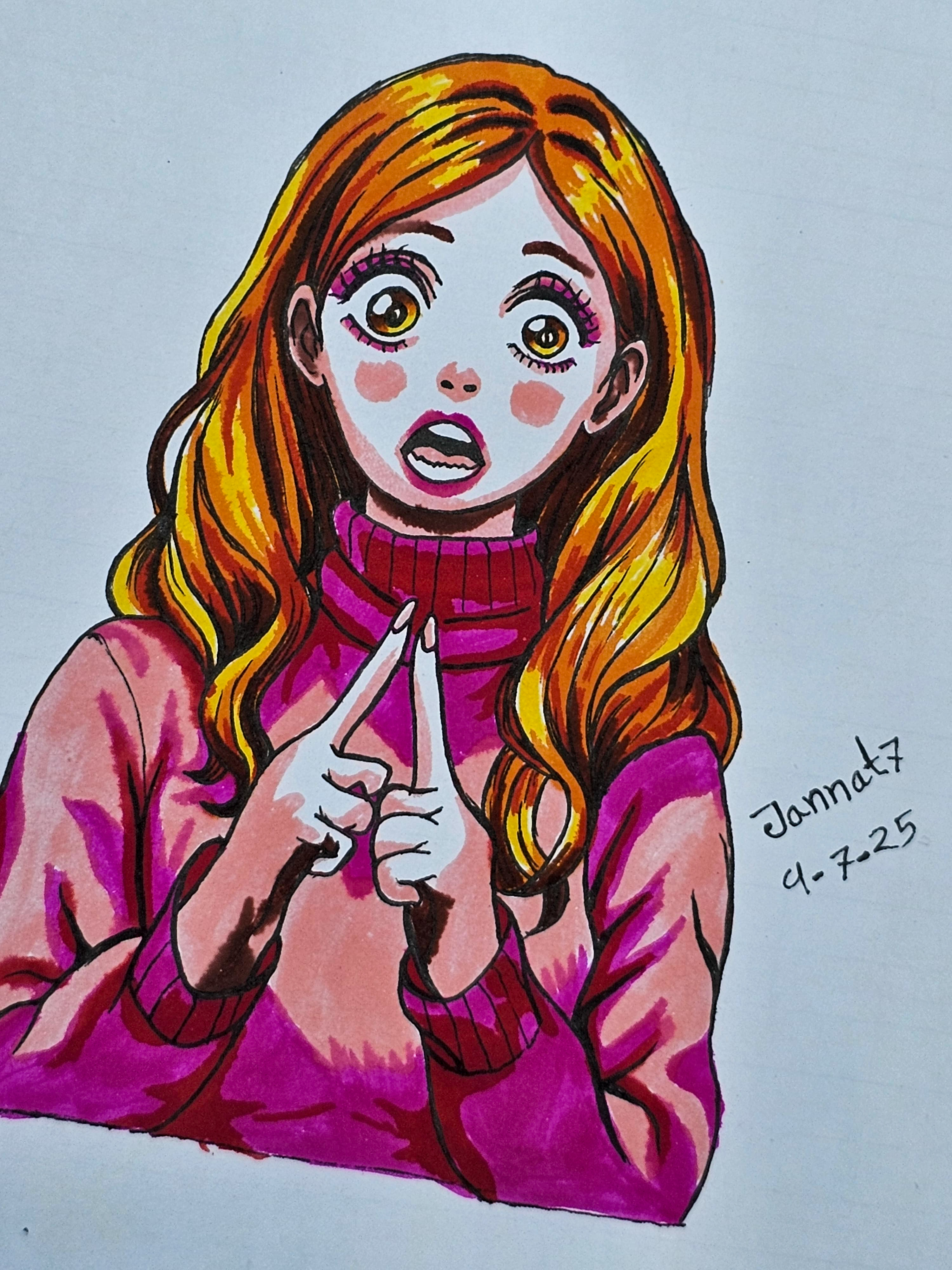 Then I colored the eyes, face, and hair beautifully with the help of colored pens.