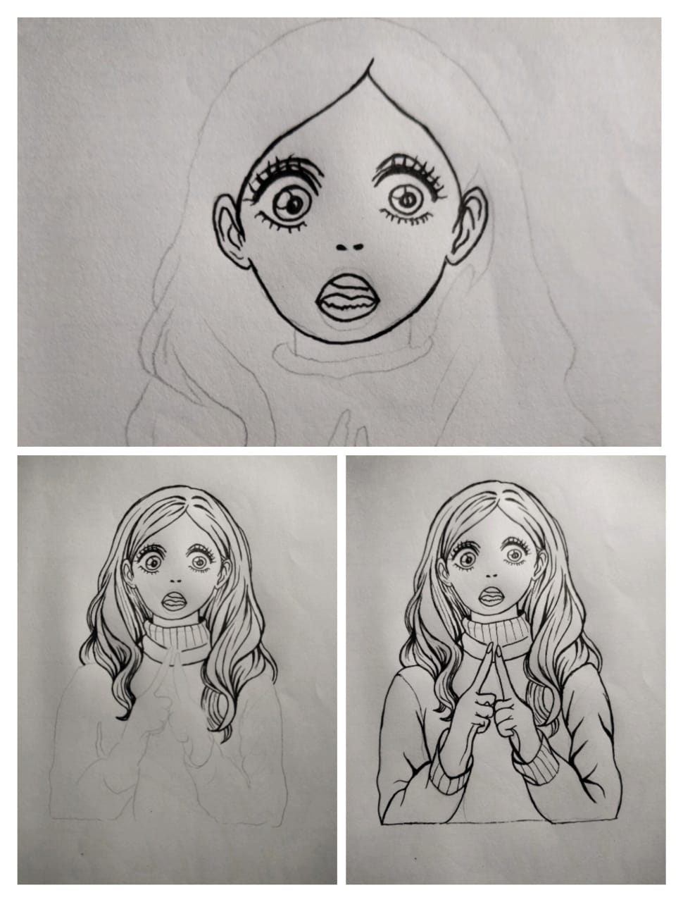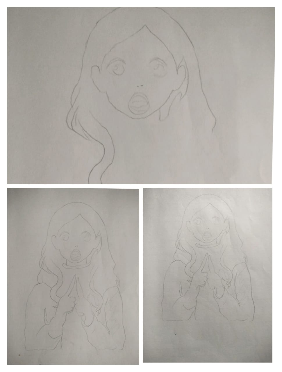 First I drew a sketch of the girl's face. Then I drew a sketch of the body.