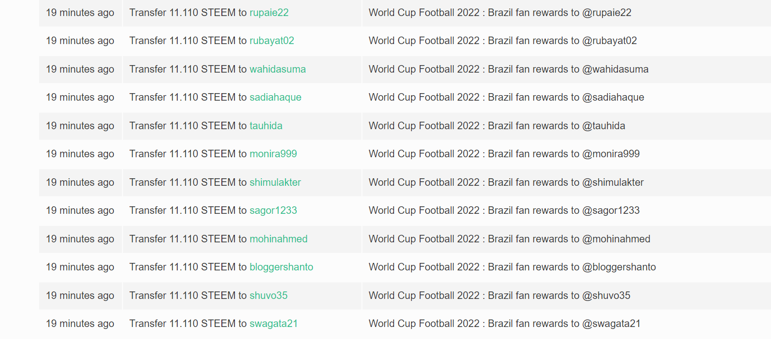 | 06 | 11.11 STEEM | @shimulakter | World Cup Football 2022 : Brazil fan rewards |