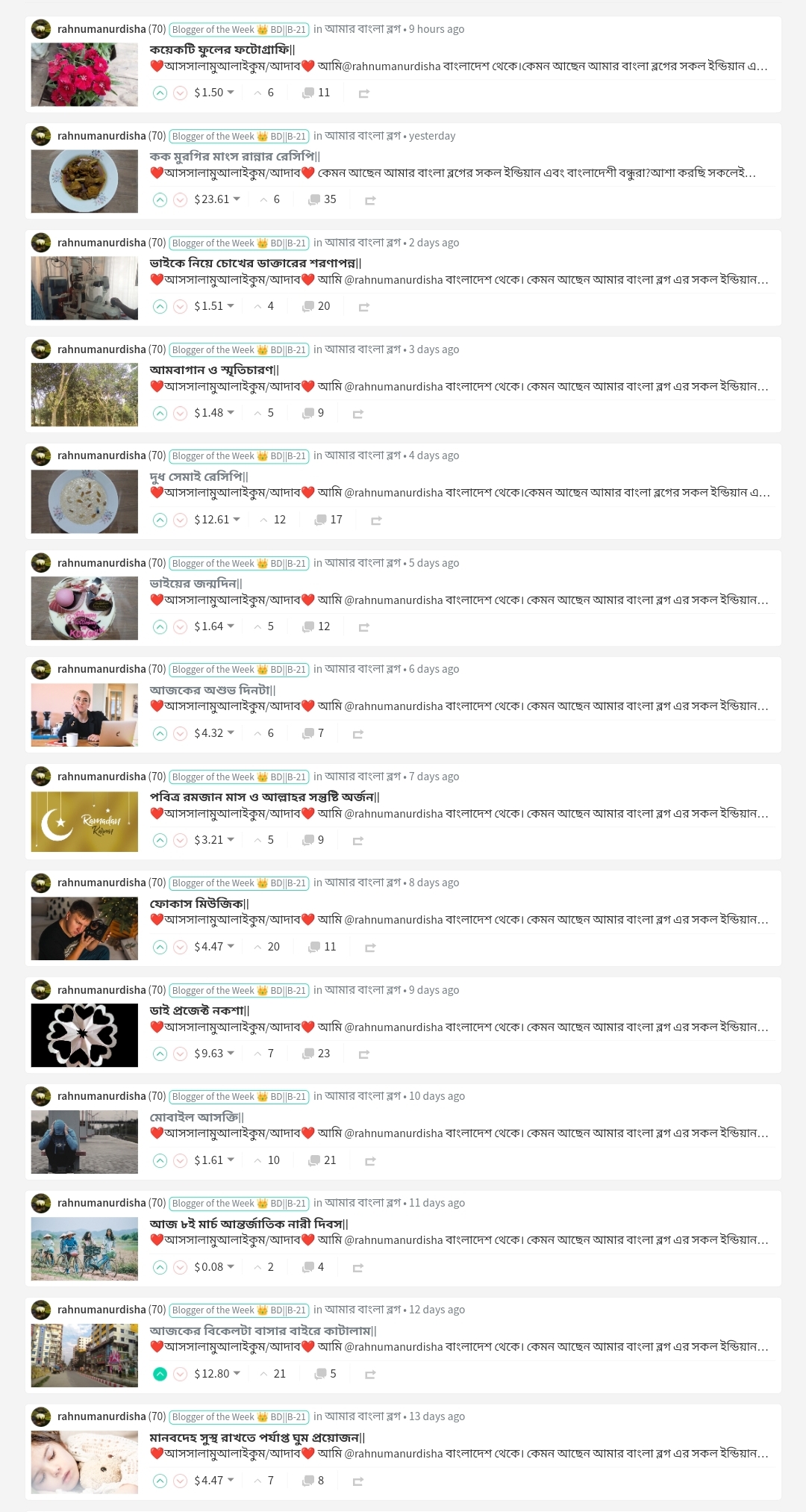 Congratulations to @rahnumanurdisha for being selected as the blogger of the week.
