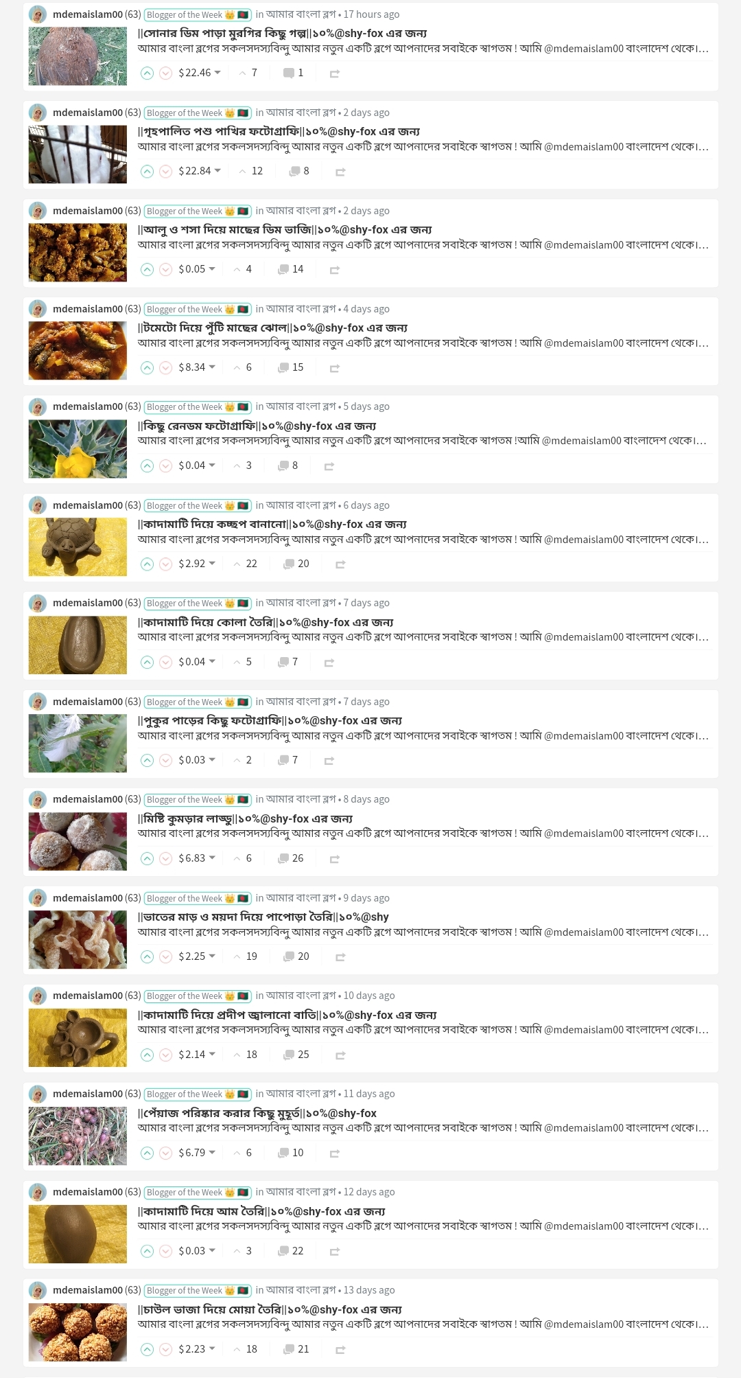 | 01 | @mdemaislam00 | $25 UPVOTE | সোনার ডিম পাড়া মুরগির কিছু গল্প |