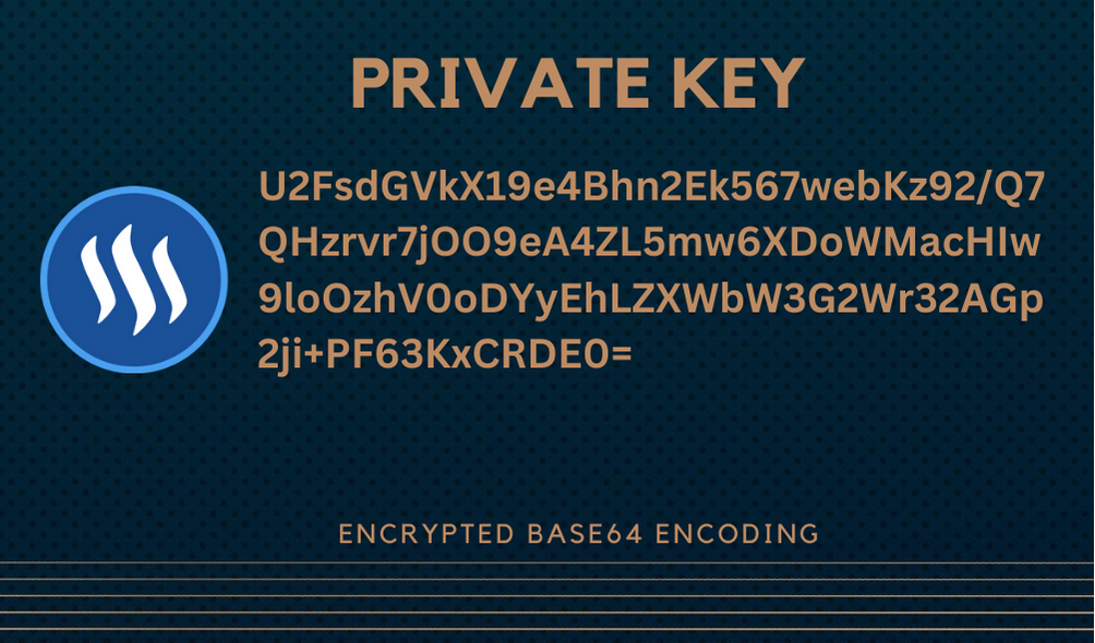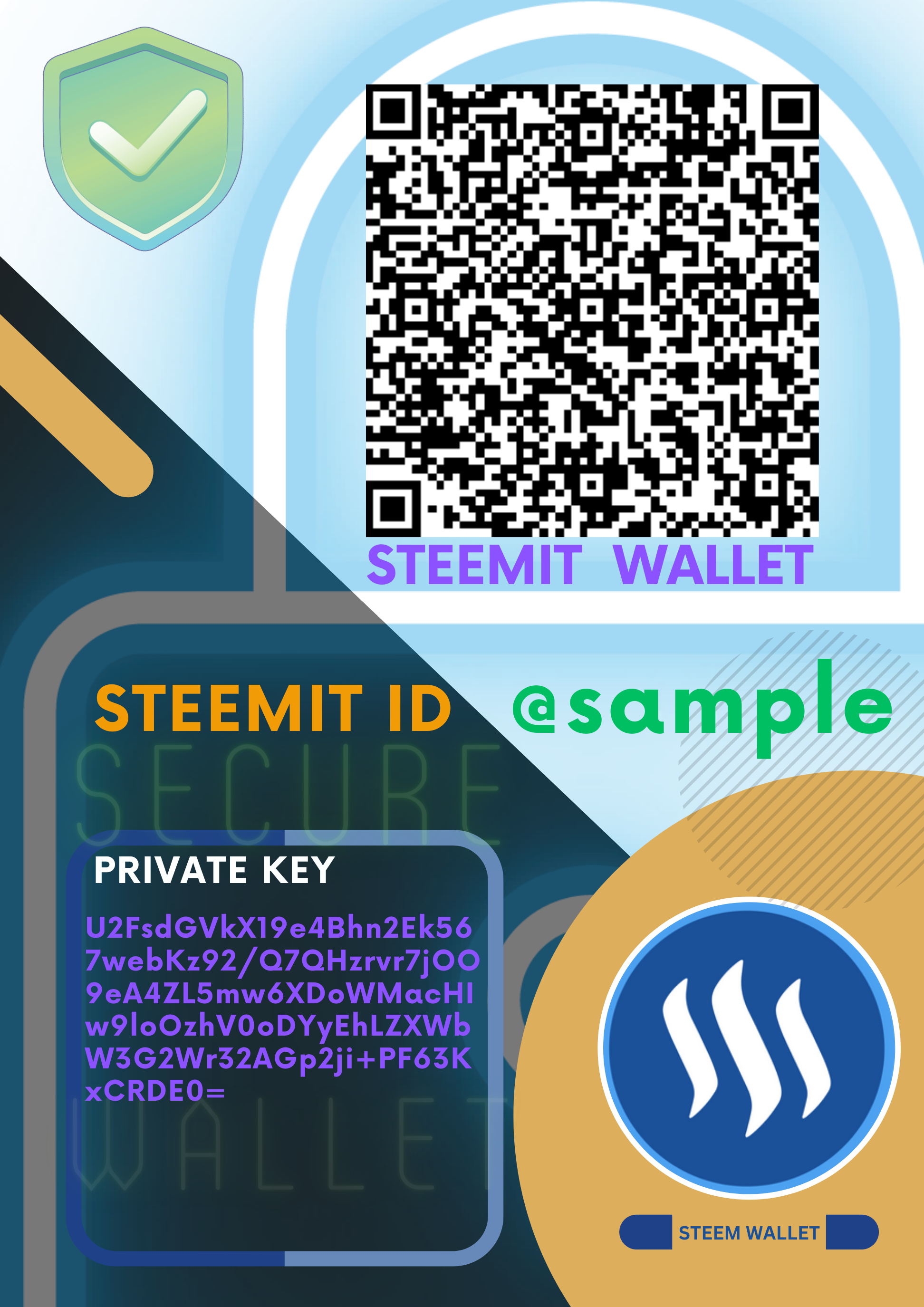 আর কার্ডের নিচের দিকে স্টিমিট একাউন্টের প্রাইভেট কীর AES-256 Bit এনক্রিপ্টেড ডেটার Base64 ফরম্যাটে এনকোড করা রয়েছে। এটা রয়েছে এ কারণে যদি কোনো কারণবশতঃ QR কোড ড্যামেজড হয় তবে স্ক্যানে অসমর্থ হলে এই টেক্সটটি তখন কাজে লাগবে ডিকোড এর জন্য ।