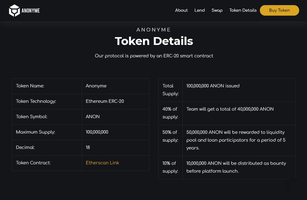 In total, Anonyme has issued 100 million ANON tokens, of which: