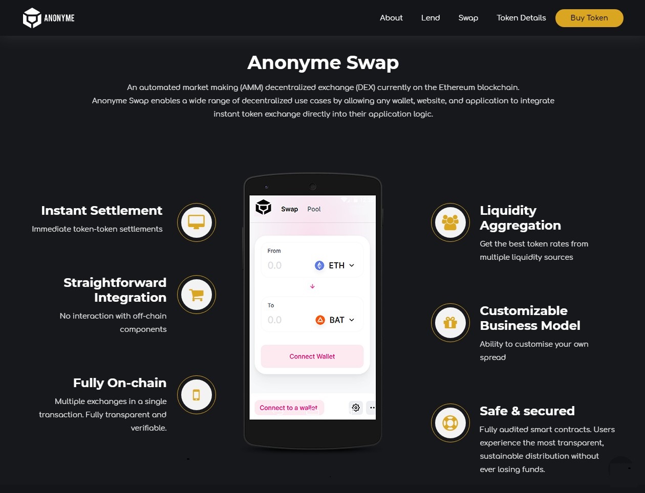 Also, a decentralized exchange will exist on the Anonyme platform, which will facilitate automated market creation. This DEX will be very easy to use and the exchange transactions will be very fast.