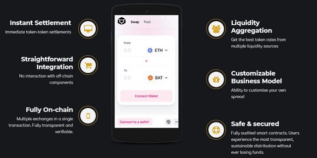 Anonyme Swap enables a wide range of decentralized use cases by allowing any wallet, website, and application to integrate instant token exchange directly into their application logic.