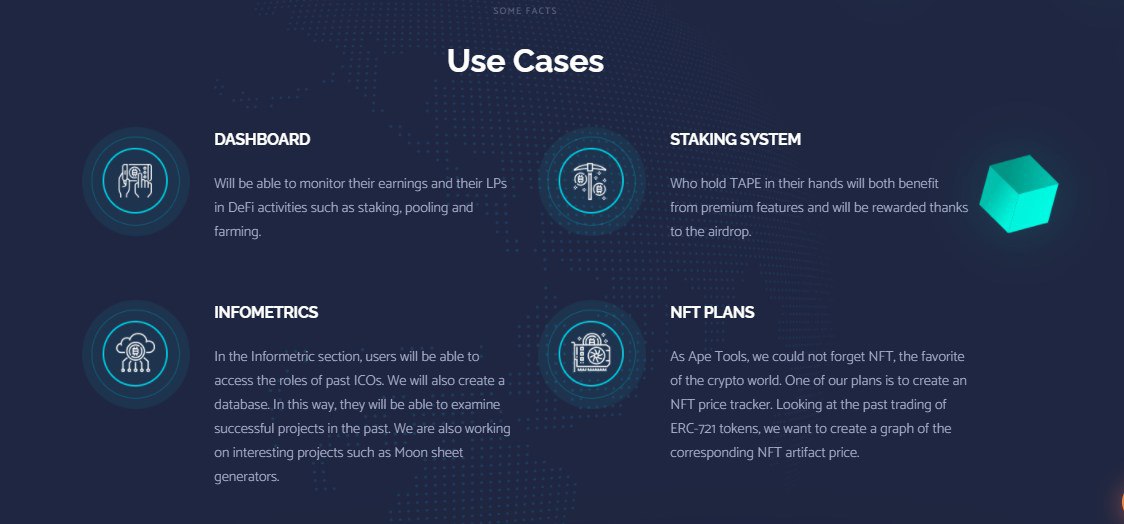Ape Tools is also designed to cover most of the projects that have been launched on the Binance Smart Chain (BSC). At the core of this are the Decentralized Exchanges (DEXs)/Automated Market Makers (AMMs), which would be tracked and analyzed.