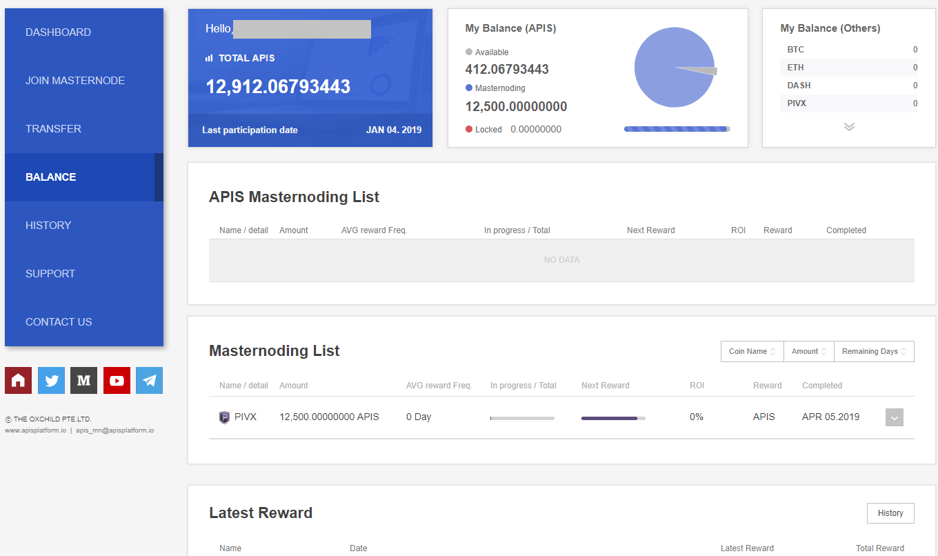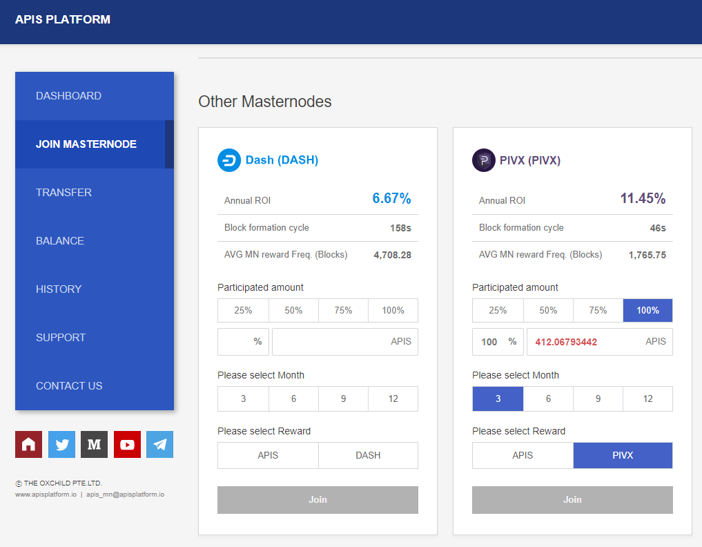현재 아피스코인 마스터노드 참여는 종료되었으며 약 3개월 후 리프레쉬 예정입니다