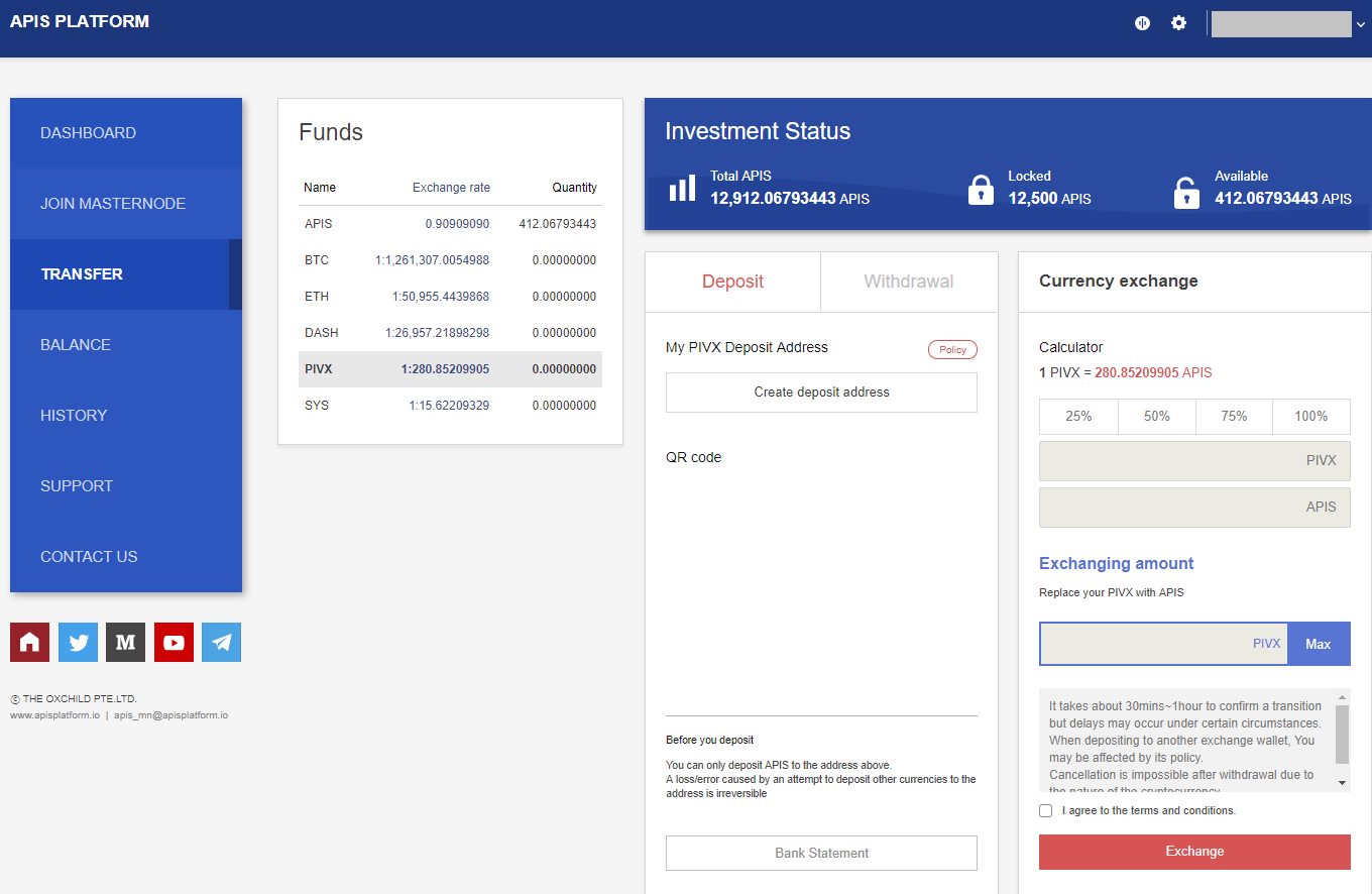 다만, 아피스플랫폼에서 pivx와 apis코인을 맞교환 할때의 비율이 만족스럽지 못할수도 있습니다.
