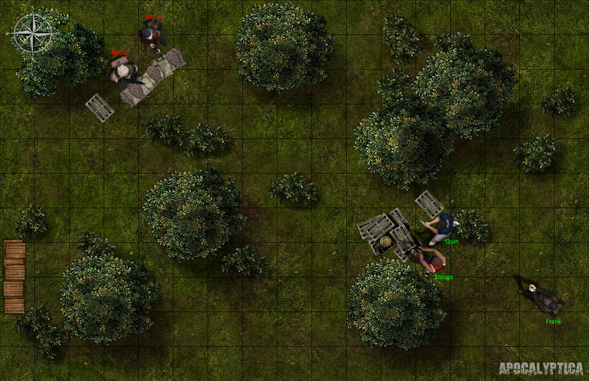 A player has roughly 24 hours [until the next post is made] to respond to a post with their characters decisions and actions. If no response is received before the next post the player will be left in in its previous position on the game board and will gain both hunger and thirst. An unattended player is vulnerable to attack from nearby npc’s [bandits and foes].