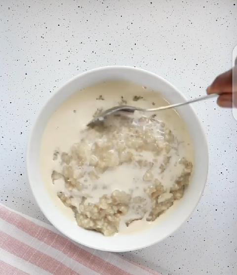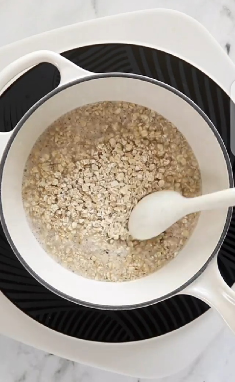 Put oats in water and stir (you can add a pinch of salt)