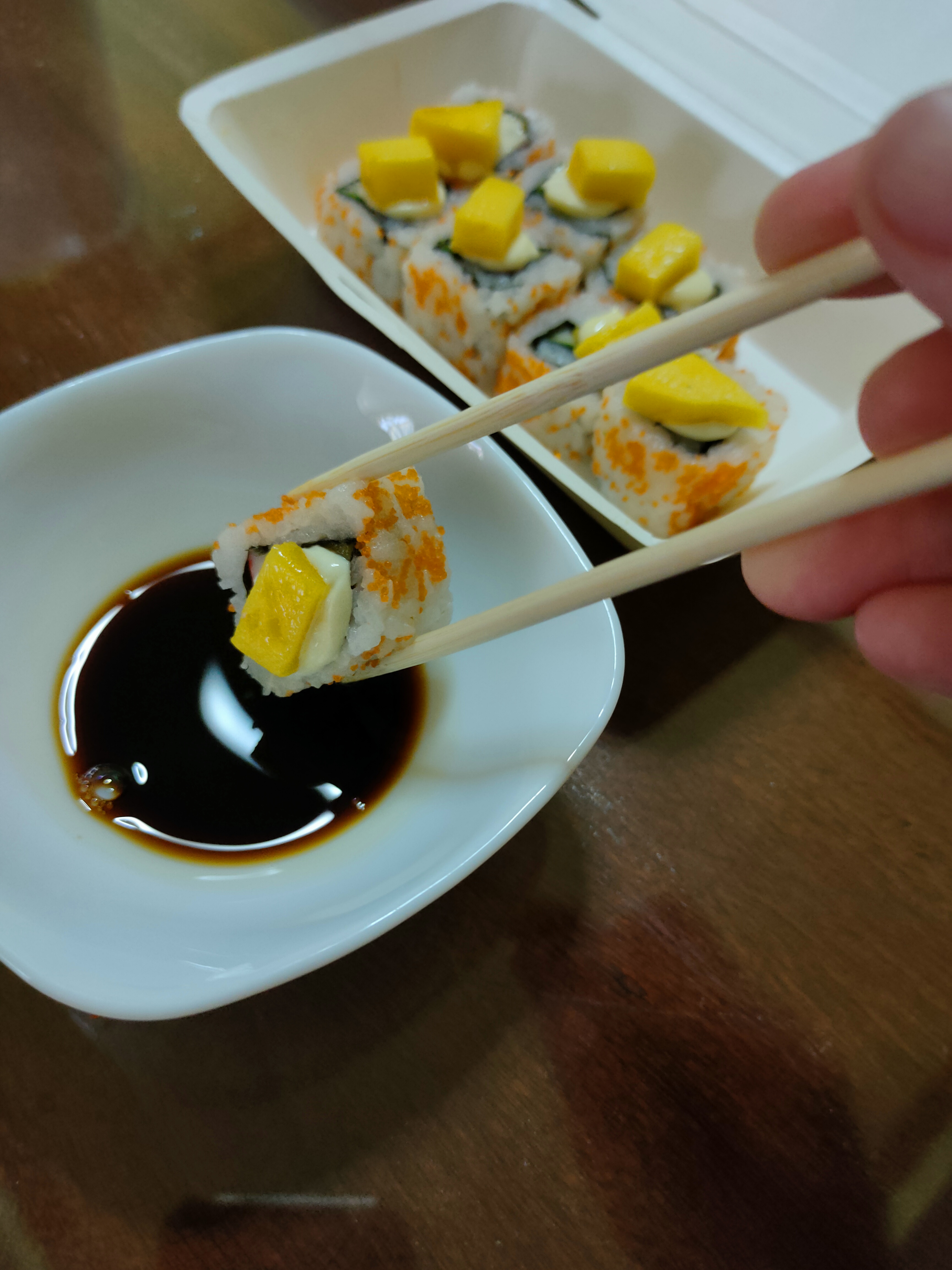 Craving was satisfied yesterday. While I was walking inside the mall, I saw this small sushi/maki store. I was drawn towards it and didn't hesitate to buy. They have lots of flavor to choose from but I picked what's familiar and suitable for my stomach.
