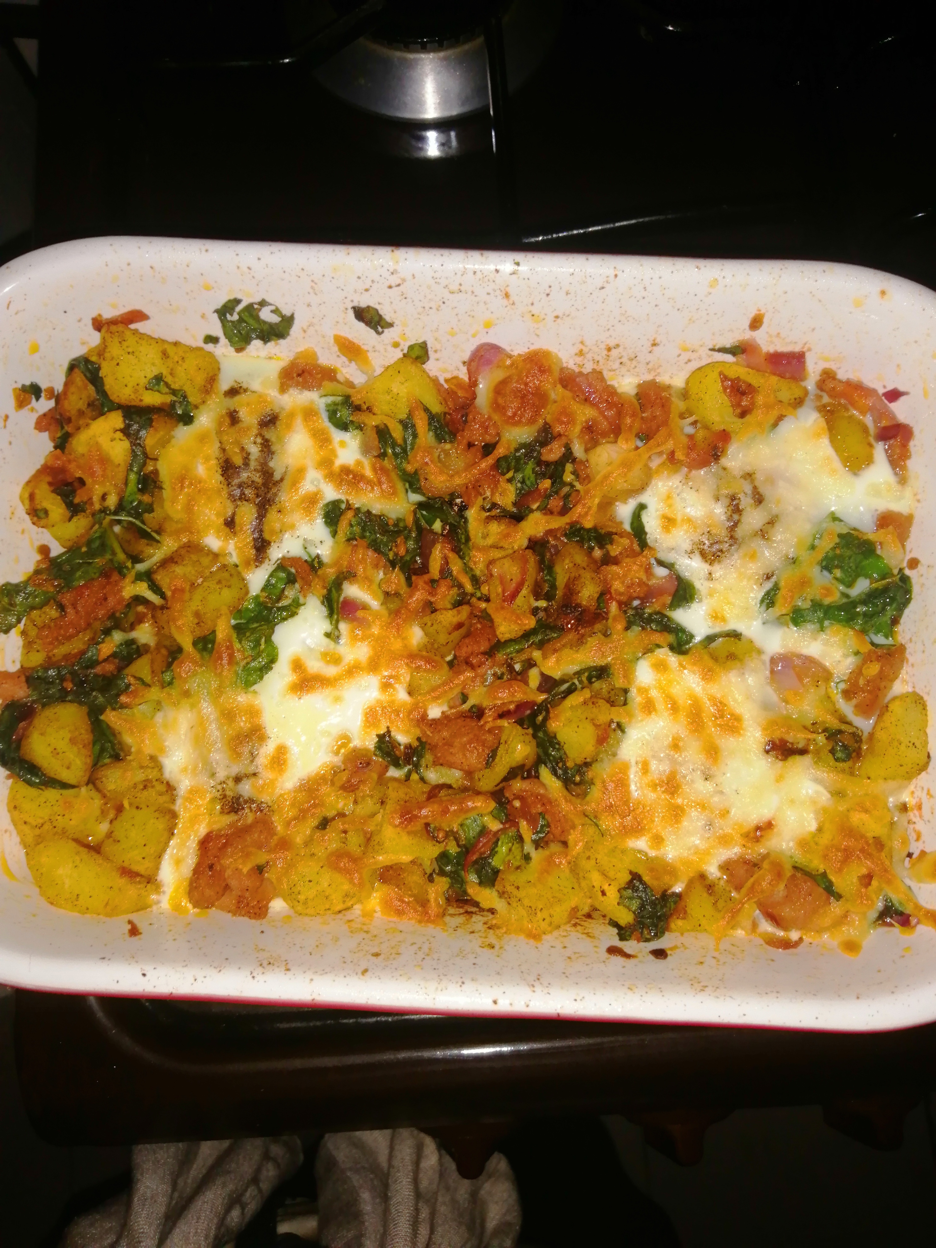 Breakfast is served :-)gacherih (55)in #appics • 6 years ago (edited) Delicious Breakfast/brunch. Ingredients Potatoes Spinach Onions Eggs Cheese #steemfood