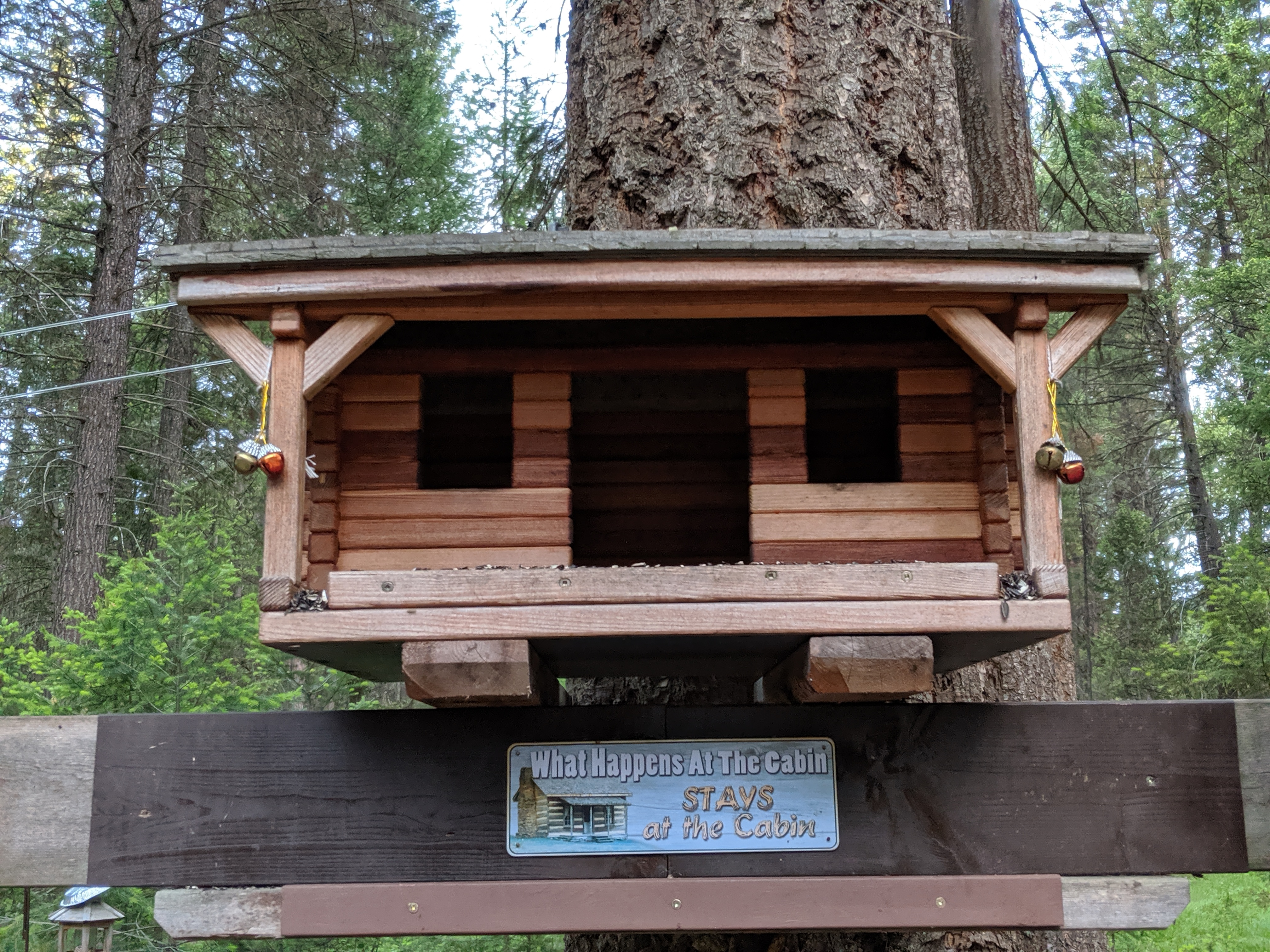 Love this Large Bird House! " What Happens at the Cabin, Stays At The Cabin!" Lol! Their son made it for them!