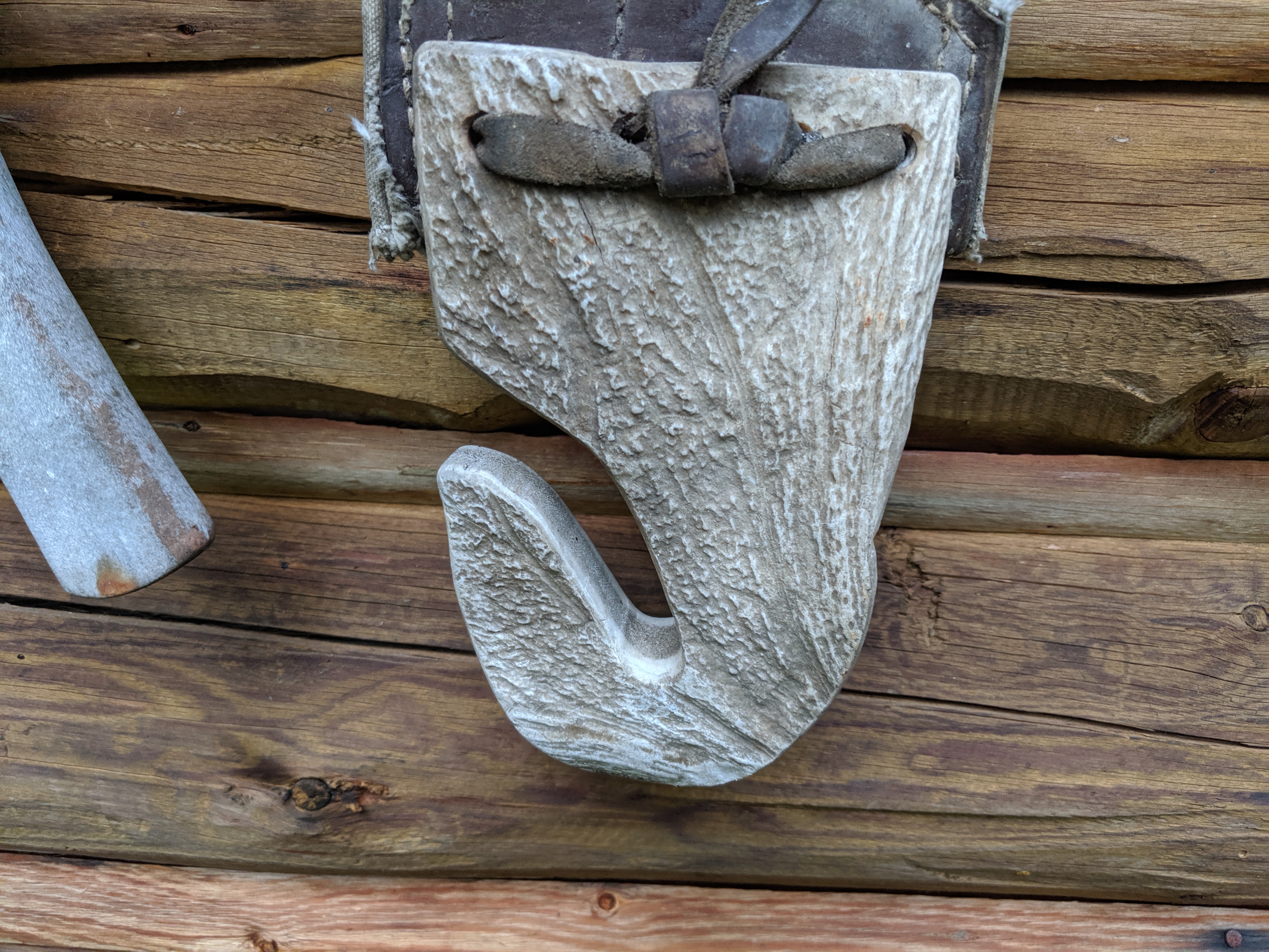 Here's a close up of the hook above, Its made by hand a long time ago out of some type of Antler we believe!