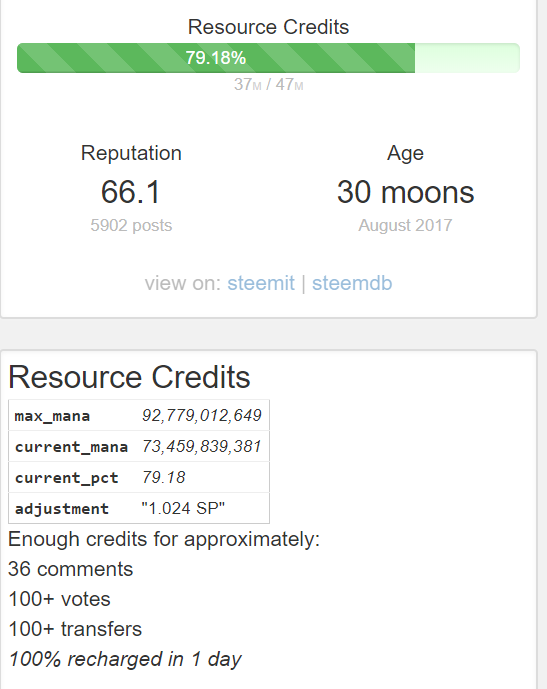 As we speak, your RC bar is around 80%, meaning you could upvote 100+ times or comment 36 times, before having to slow down and let it recharge.