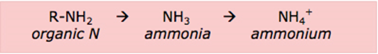 • Mineralization is the process by which microbes decompose organic Nitrogen from waste solids, dead organic matter, and plant residues into ammonia.