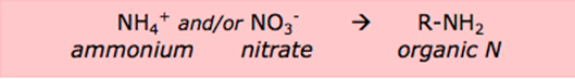 In this case atmospheric nitrogen is converted to ammonia and then into organic nitrogen. Organic nitrogen must be broken down further before plants can readily use and absorb the nutrients.