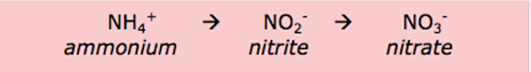 The ammonia is further broken down from NH3 to NH4 or ammonium, it is this ammonium that is converted into Nitrites and Nitrates.